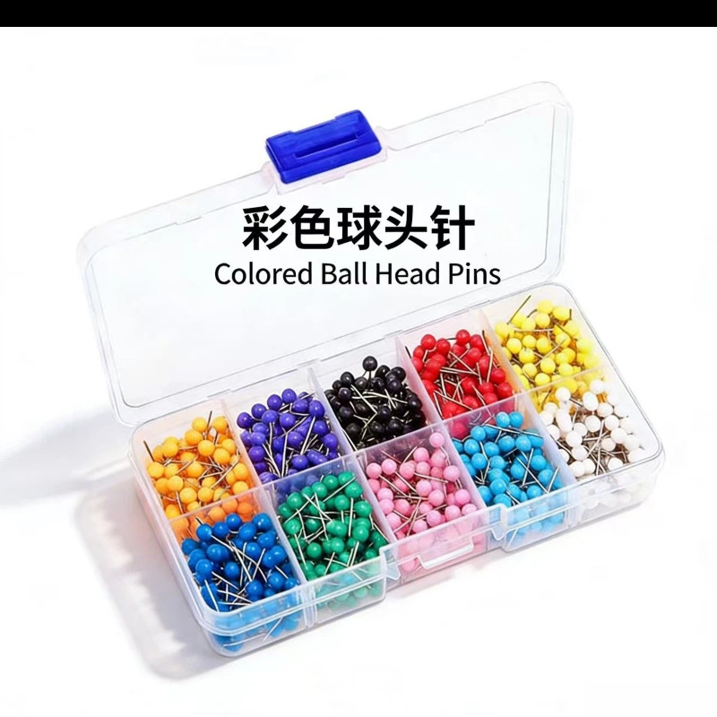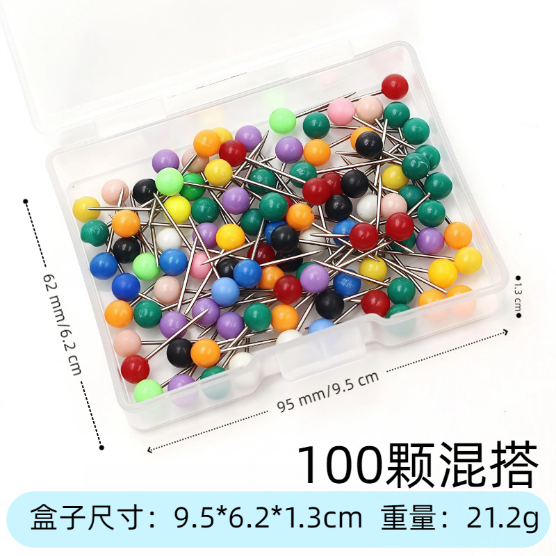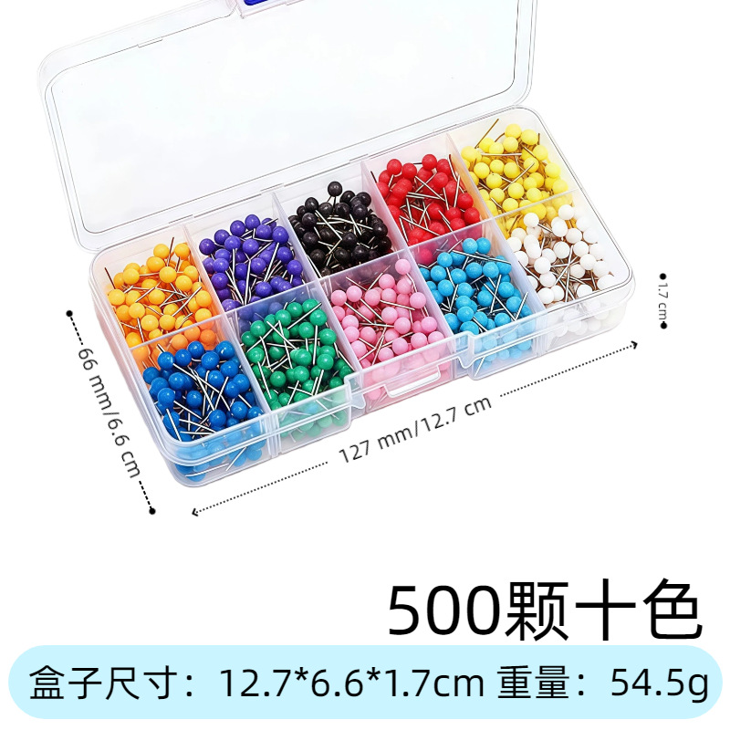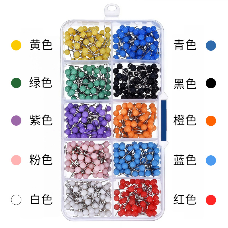 厂家批发十色地图钉球头针留言板照片墙固定装饰大头定位针盒装