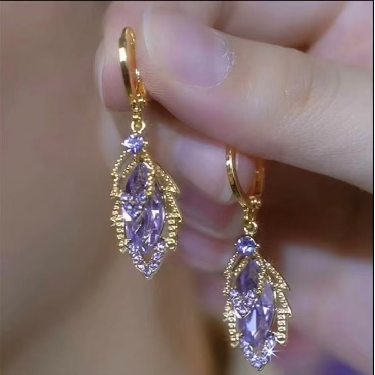 新款精致百搭潮流镶钻树叶流苏耳环轻奢高级感重工时尚气质耳饰