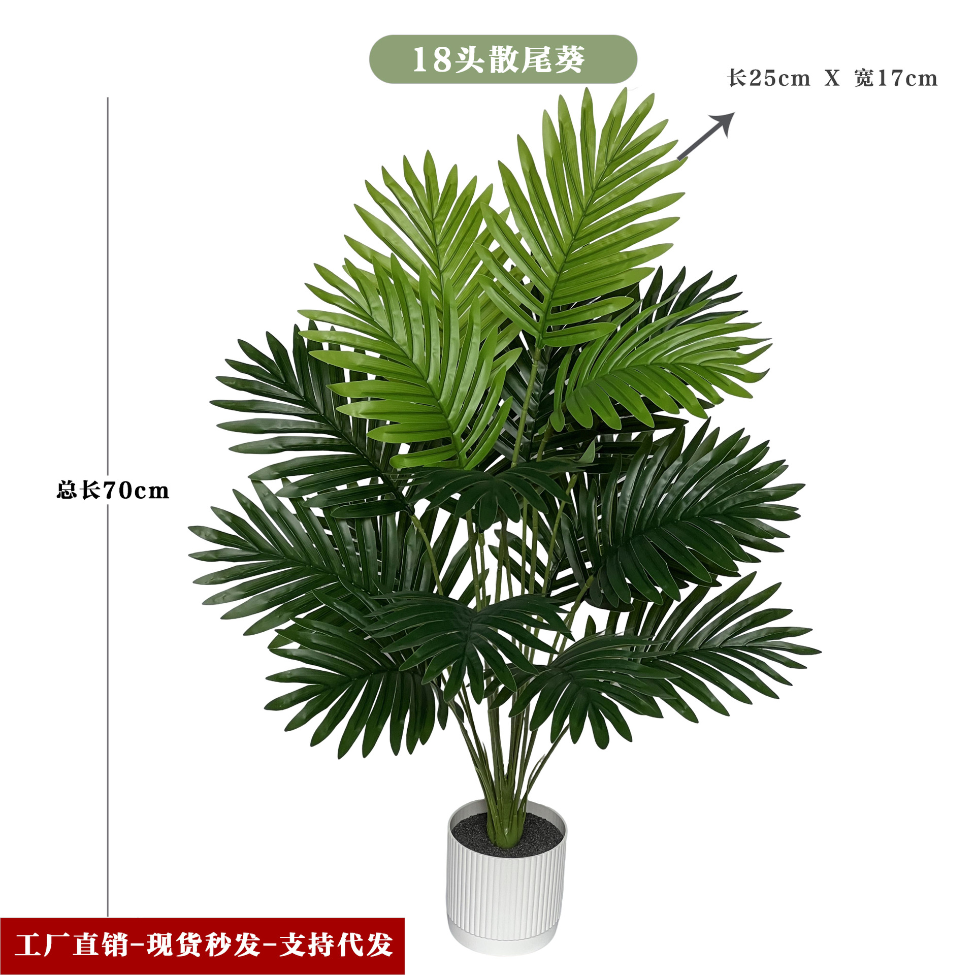 跨境批发人造仿真绿植散尾葵盆栽室内大型植物落地装饰仿真铁树叶