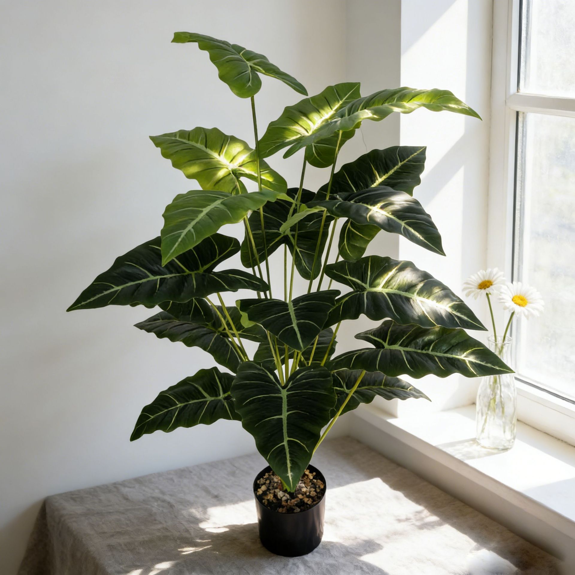 仿真海芋绿植100cm18叶客厅造景摆件亚马逊家居植物盆栽 仿真马蹄