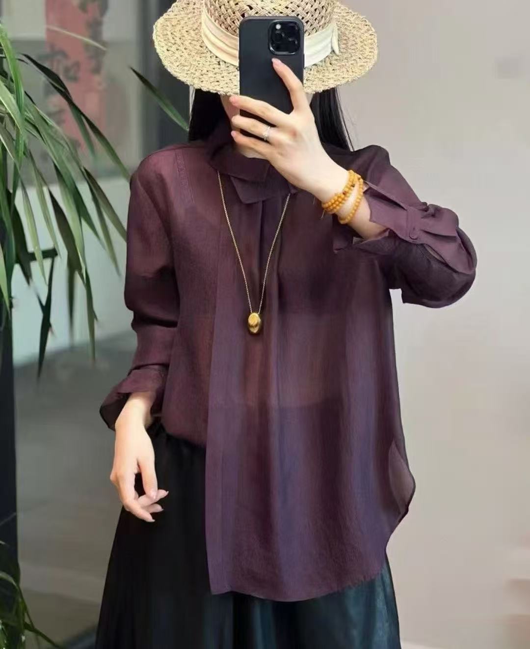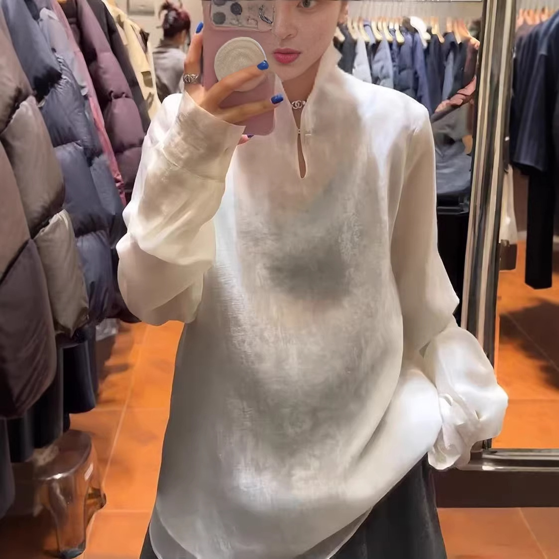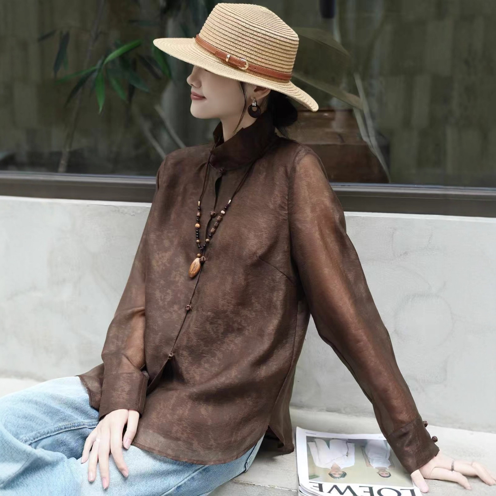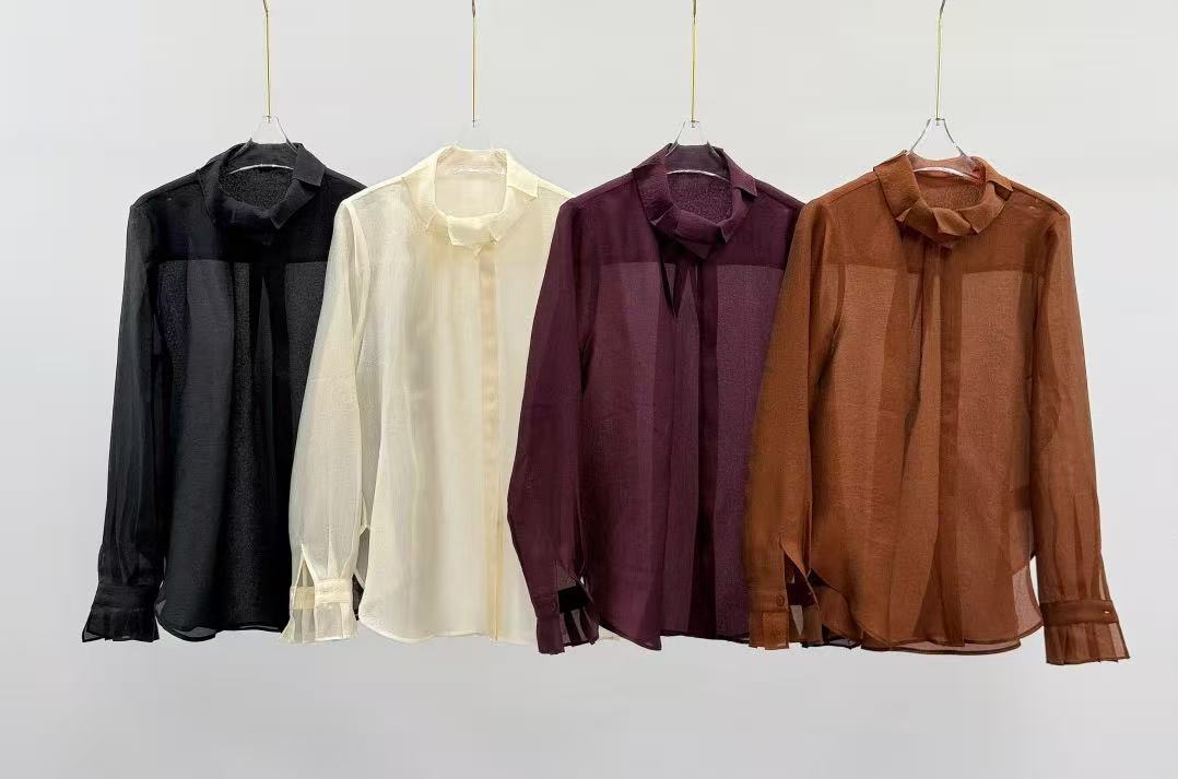 南油品质2026早春新款原创立领盘扣天丝欧根纱国风长袖衬衫上衣女