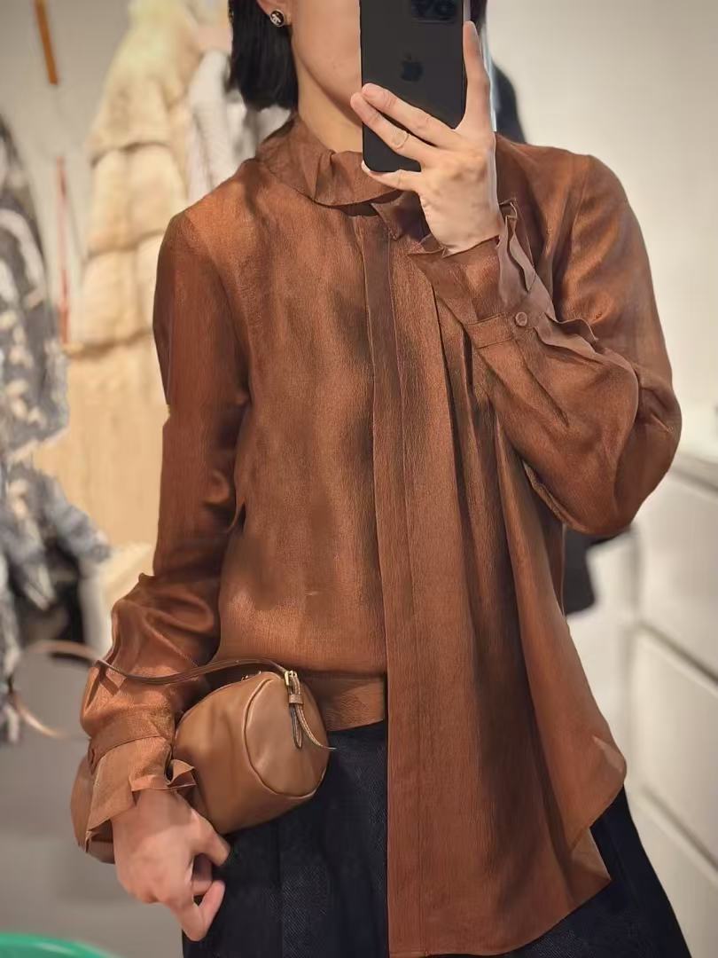 南油高定法式荷叶边百搭长袖羊毛衬衫女2025秋季新款优雅气质上衣