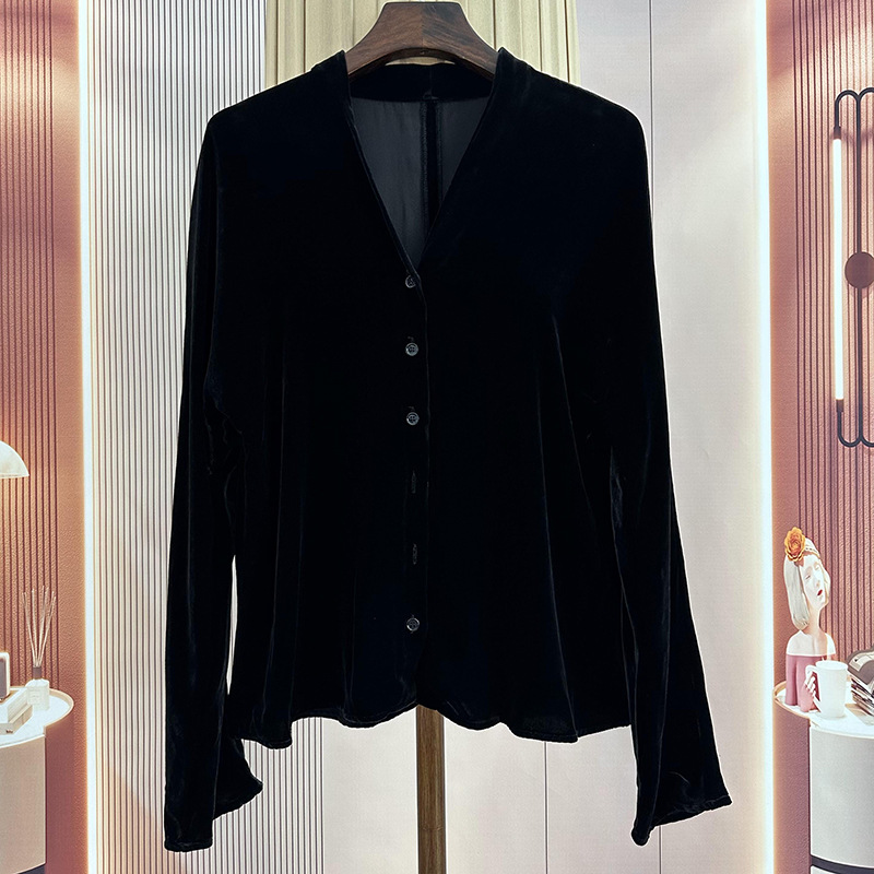 シルクのvネックのデザイン感のシャツ2023秋の新型の修身はやせているカーディガンの長袖の绢糸の上着を現します。