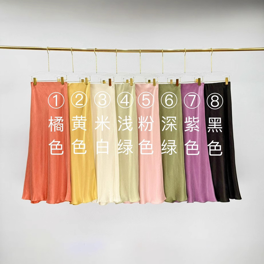 9色の背の高い超ロングタイプの酢酸スカートの女性は腰が高くて痩せています。