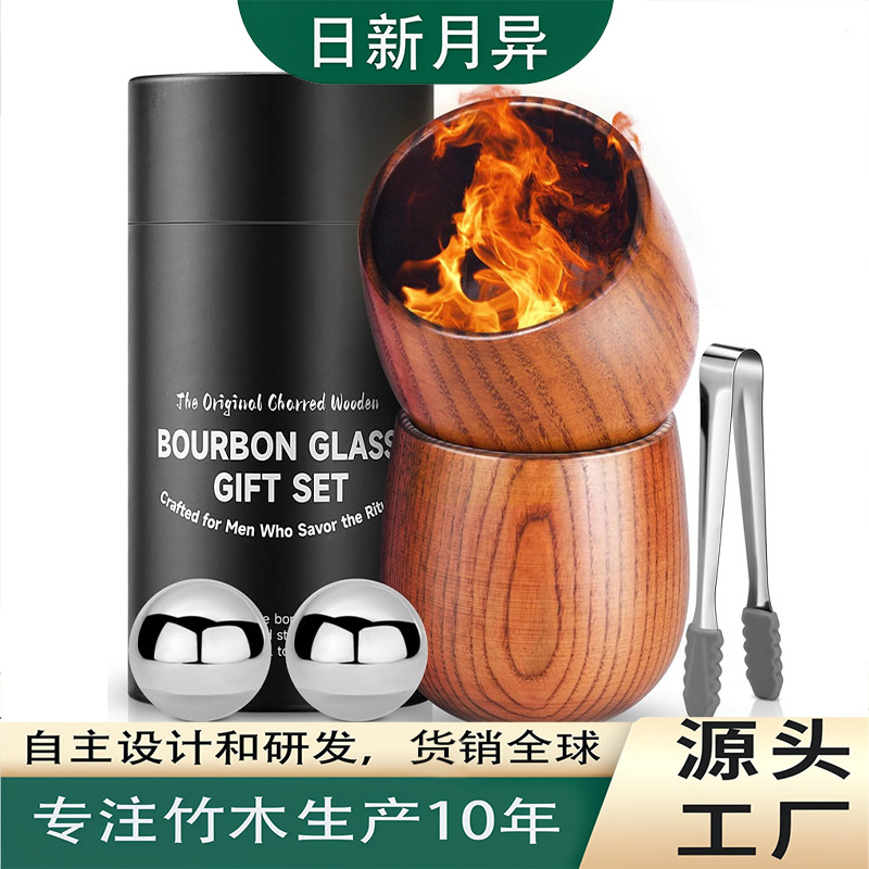 亚马逊热销碳化酸枣木酒杯套装威士忌大肚杯木质茶杯通用木杯
