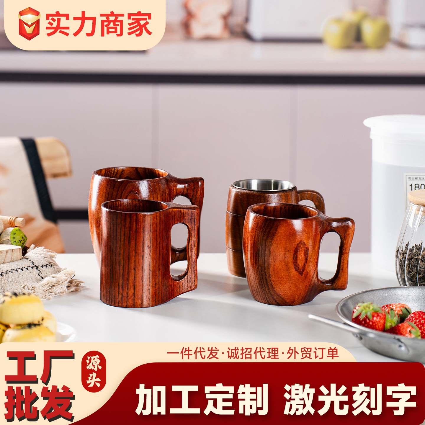 酸枣木创意环保水杯餐厅饭店家用手柄咖啡杯酒杯碳化木杯礼品批发