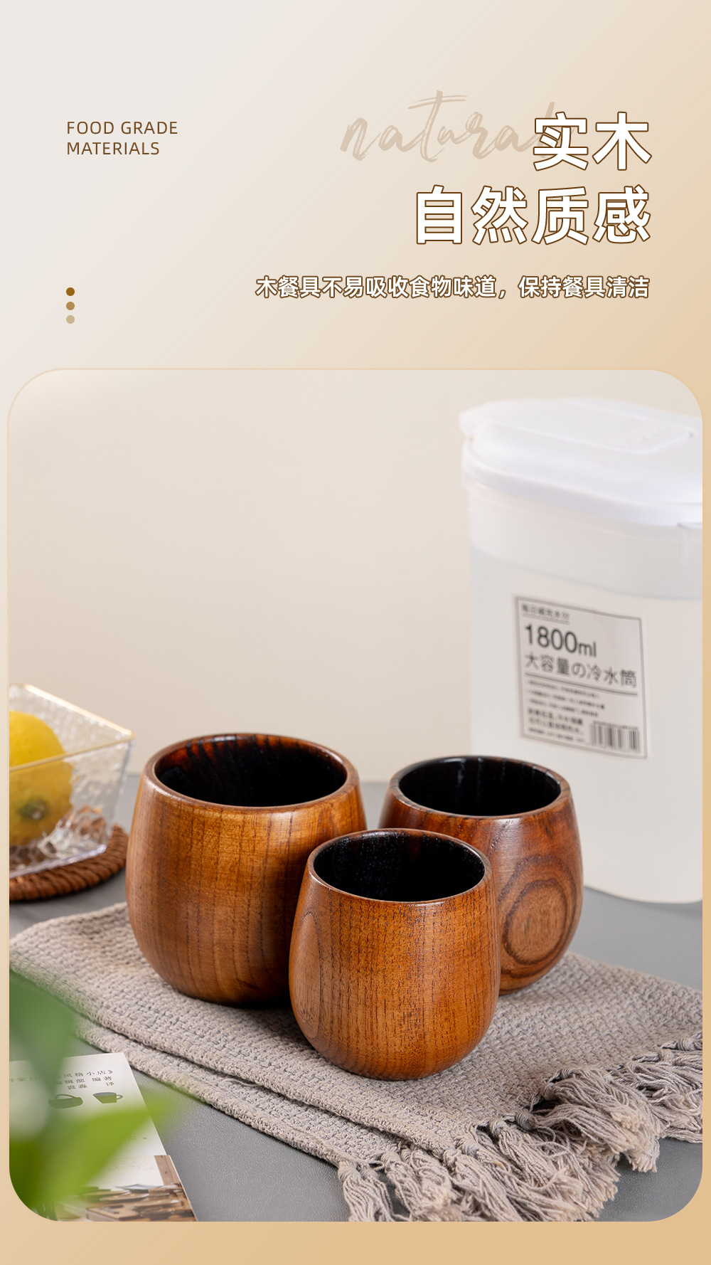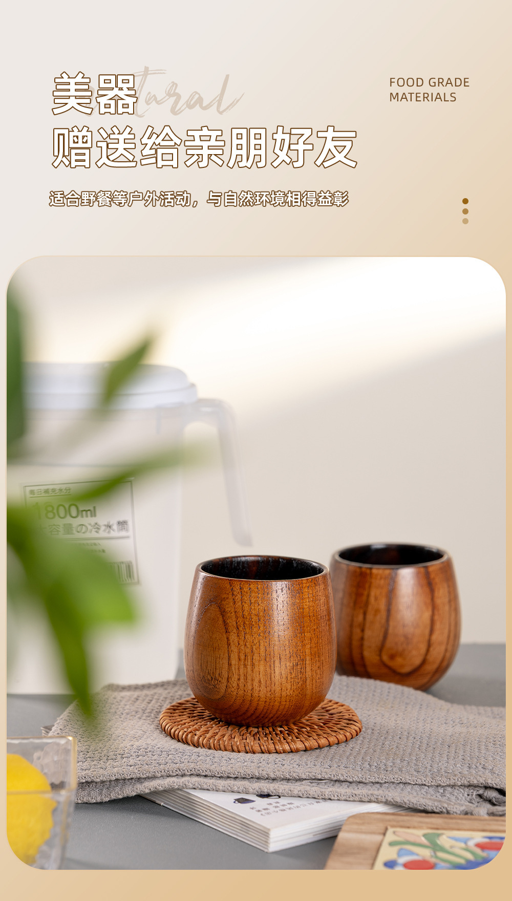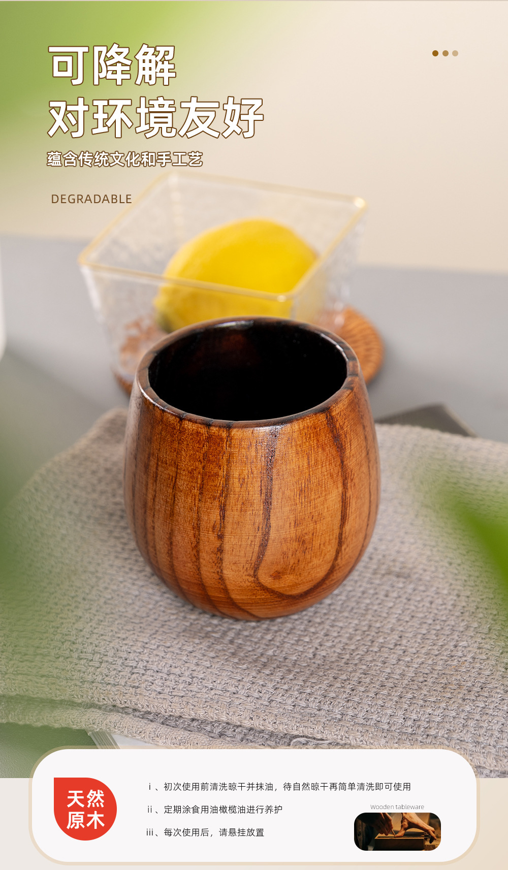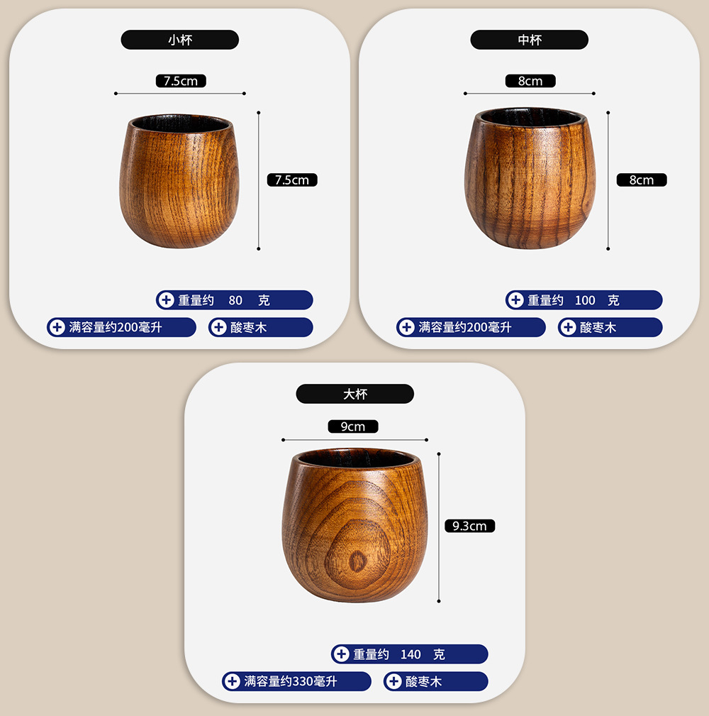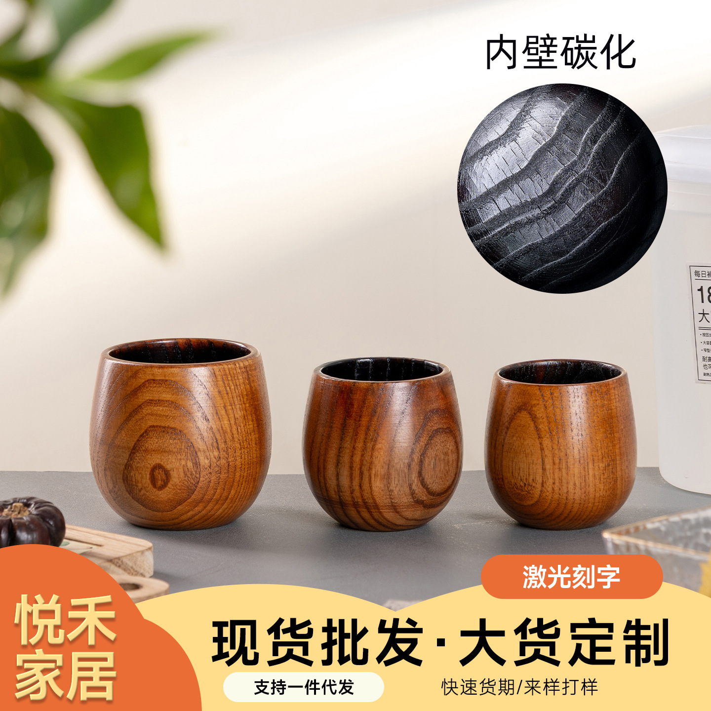 跨境碳化酸枣木杯子大肚杯小酒杯实木质随手杯餐厅茶杯可刻logo