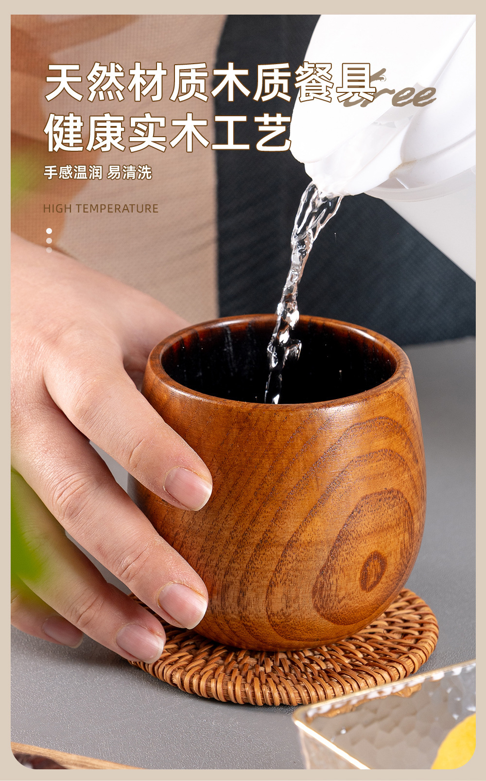 日式酸枣木和风功夫茶杯 木质创意北欧大肚杯 橡胶木杯logo批发