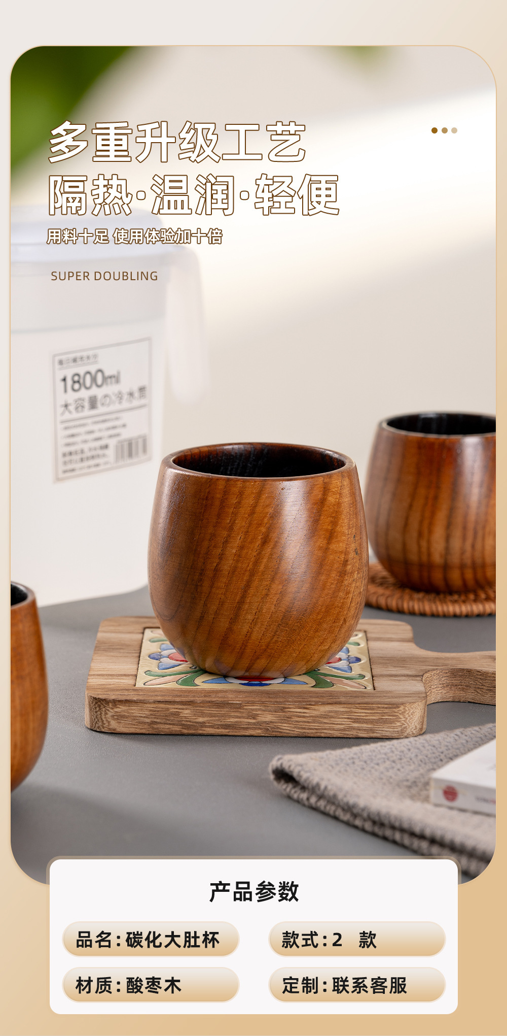酸枣木碳化大肚杯实木茶杯黑化水杯圣诞节礼品大容量杯子批发