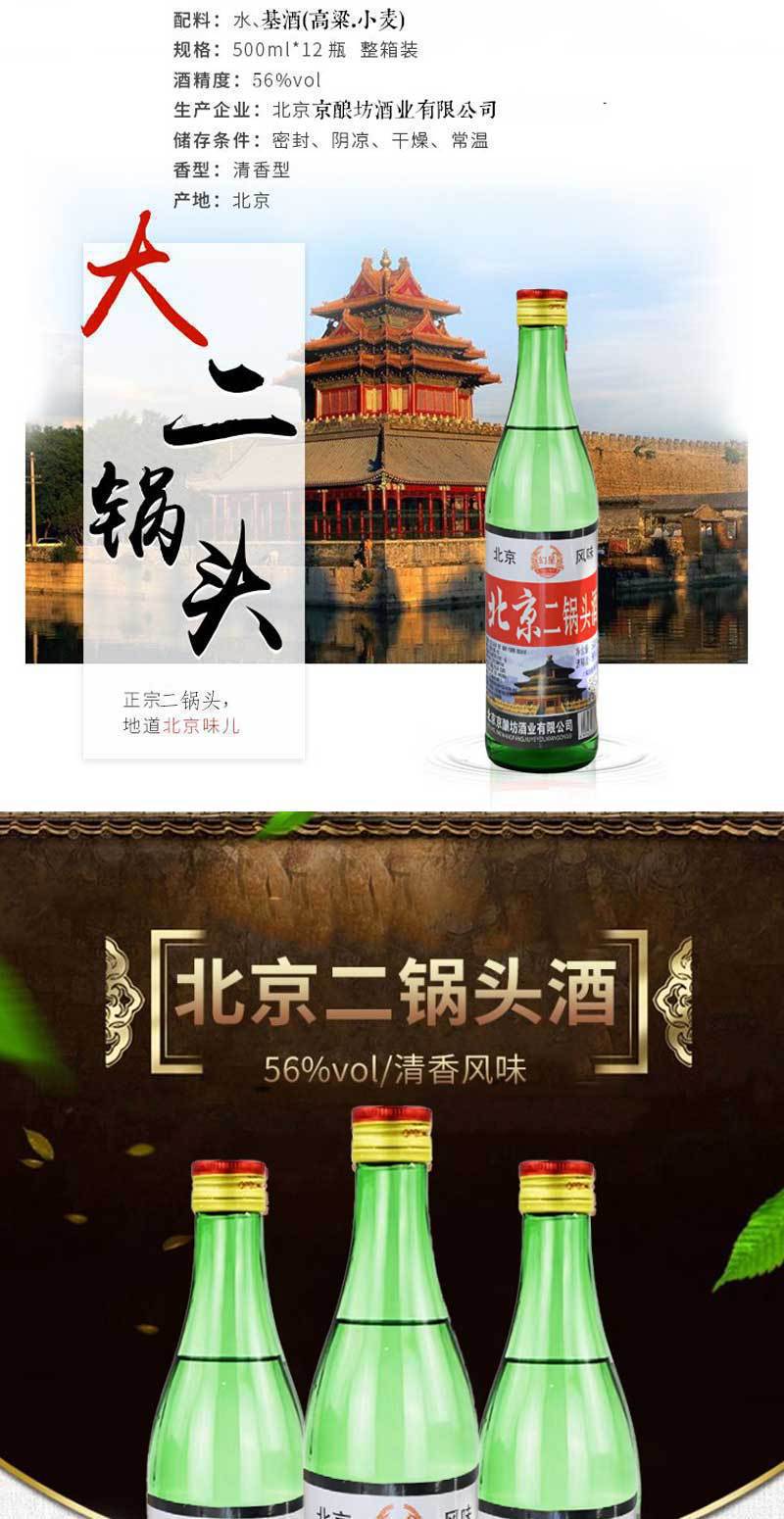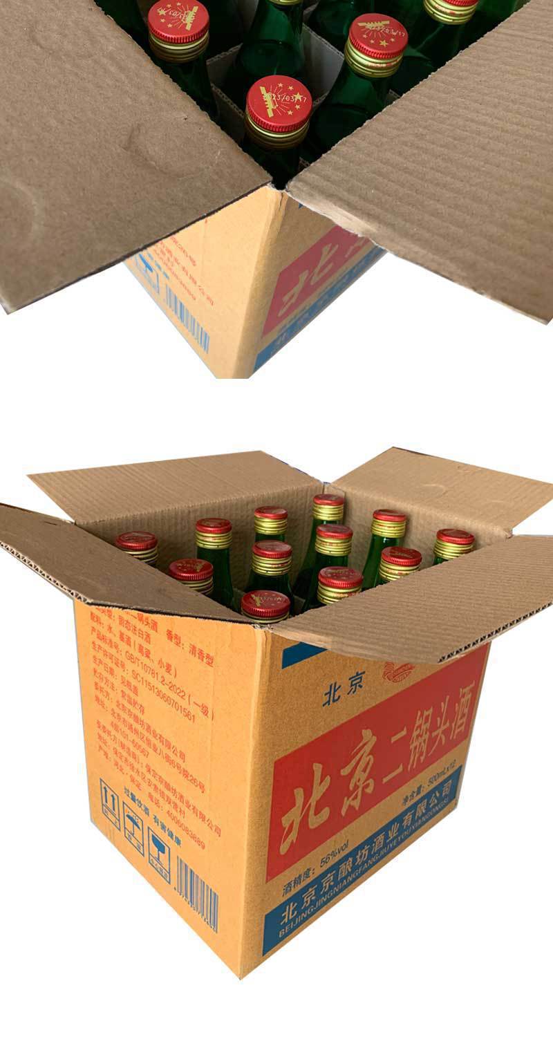 北京二锅头56度大二清香型高度白酒500粮酒整箱12瓶绿瓶批发