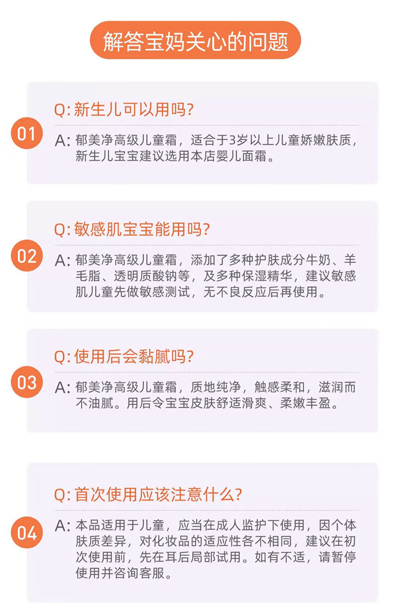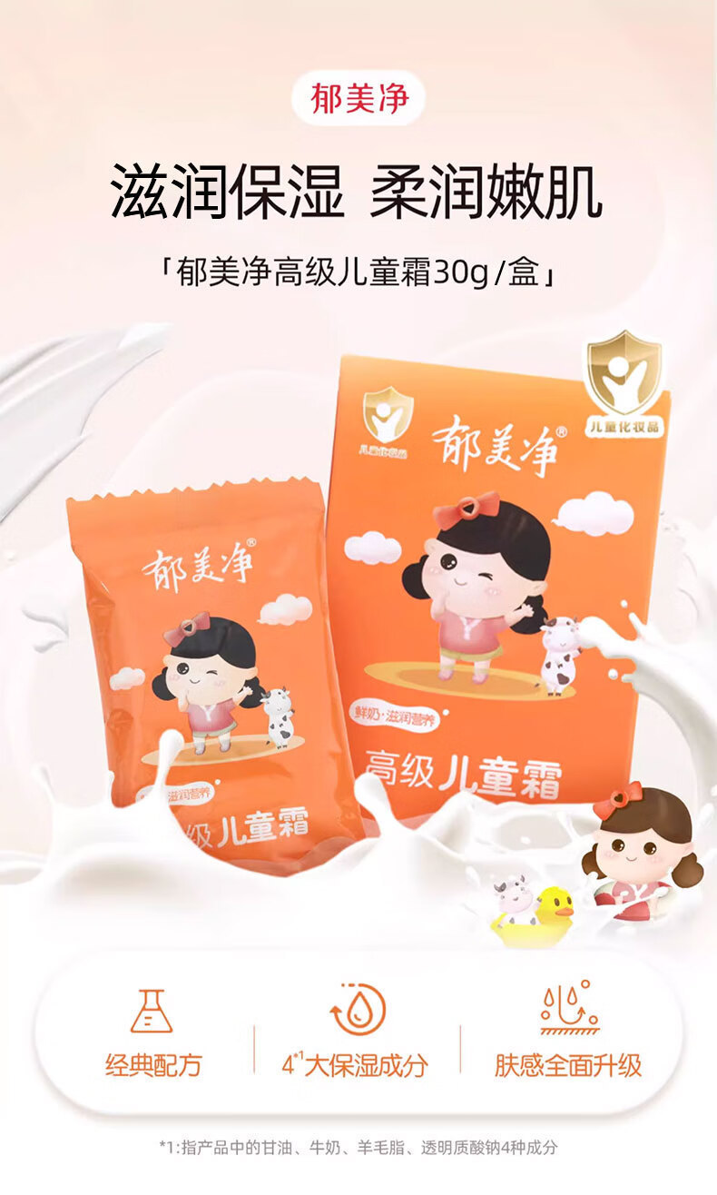 郁美净高级儿童霜袋装牛奶滋润补水保湿清爽护肤保湿秋冬宝宝面霜