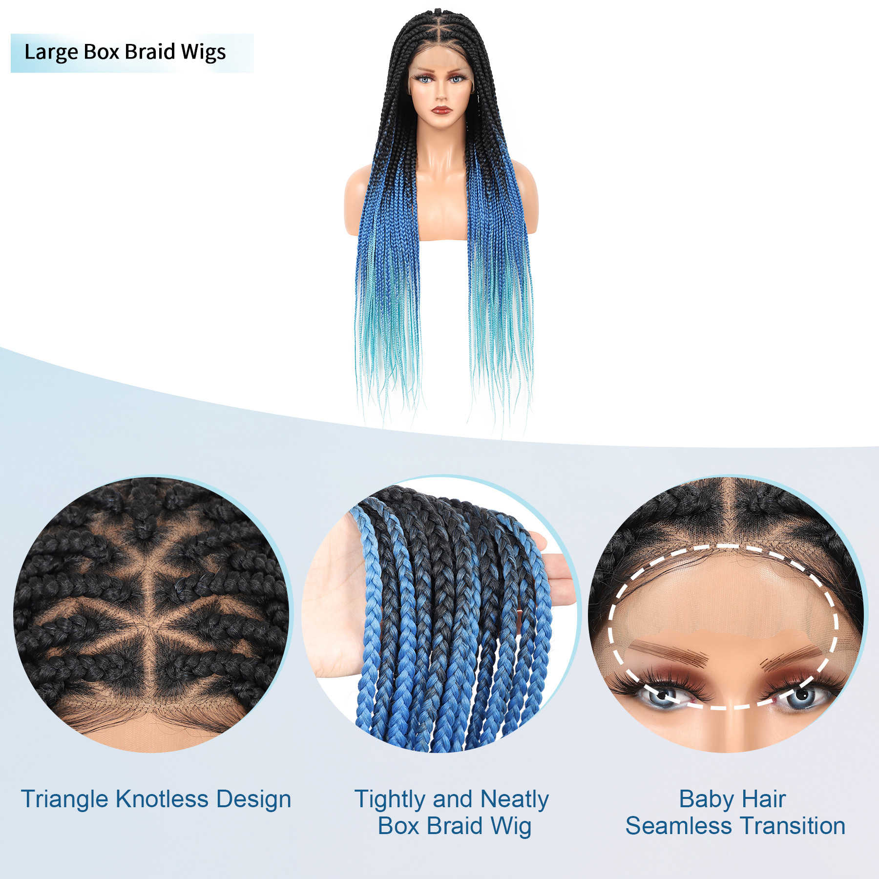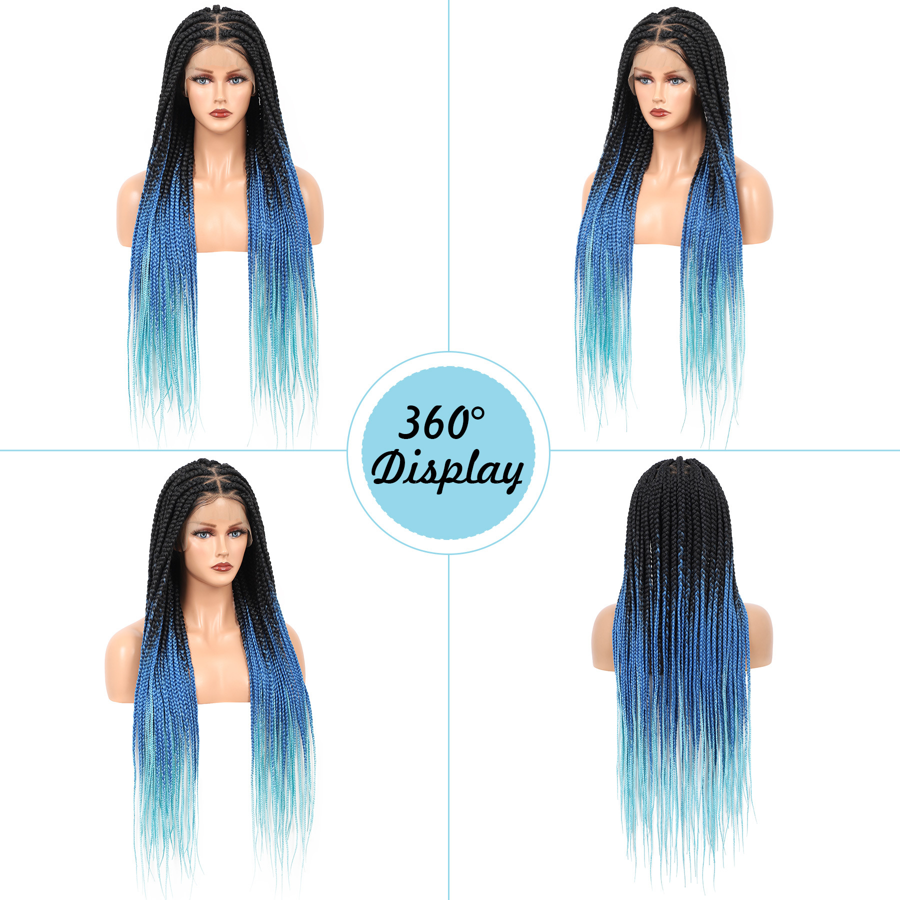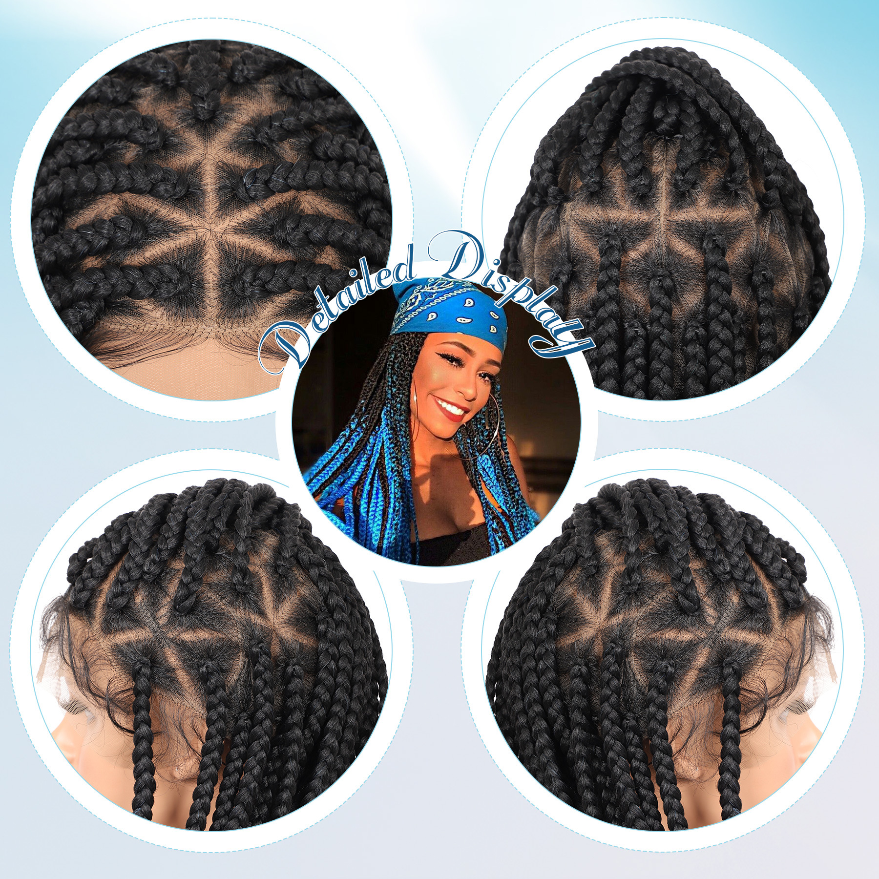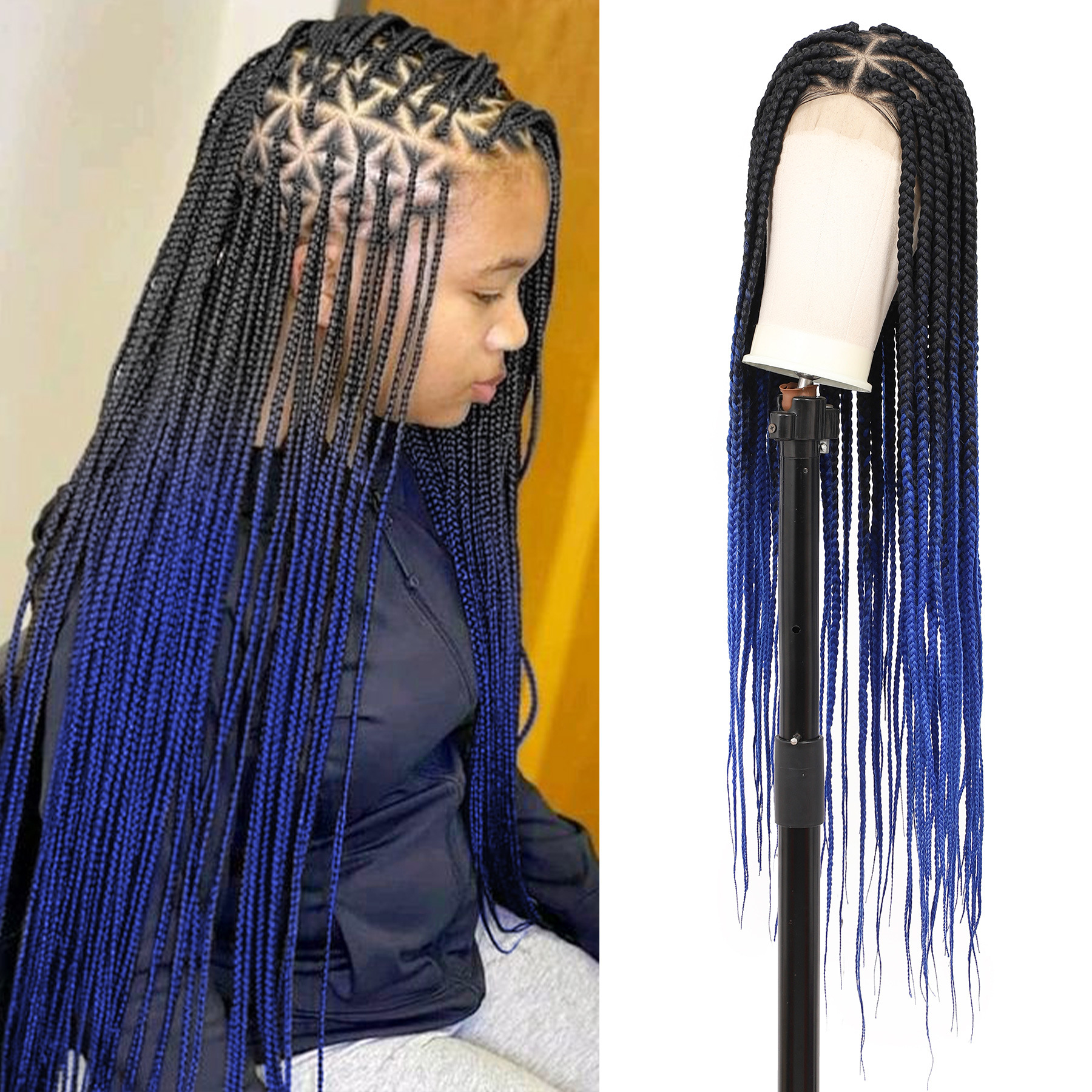 36 'フルレース編み込みウィッグ女性のための結び目のない編み込みウィッグベビーヘアボックス状編み込みウィッグ
