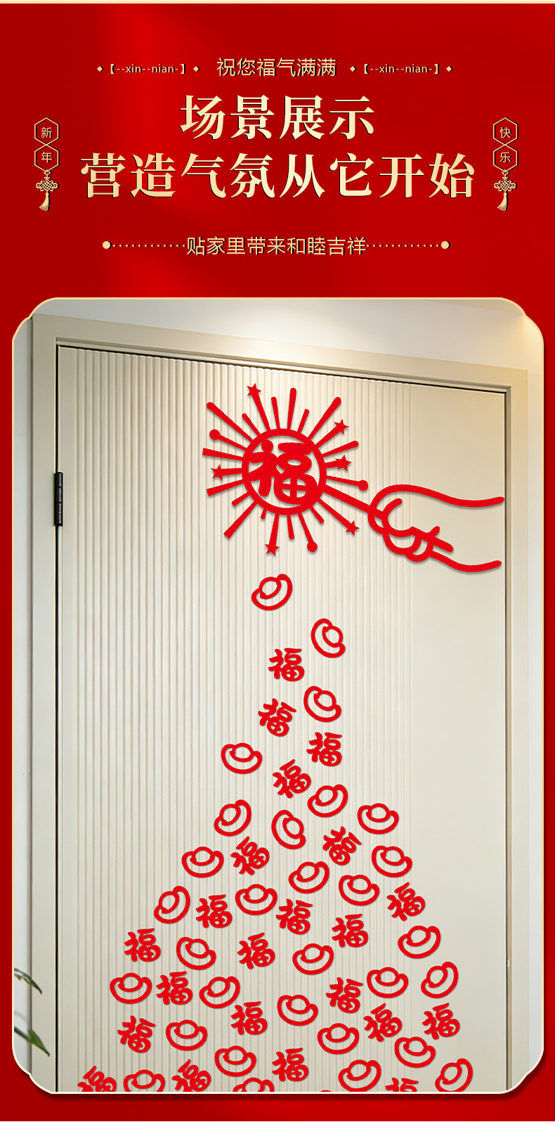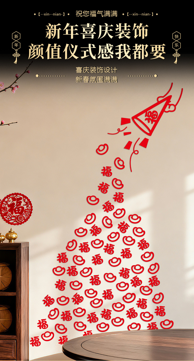 2026新年过年布置春节福字贴纸乔迁之喜新居卧室客厅装饰福到我家