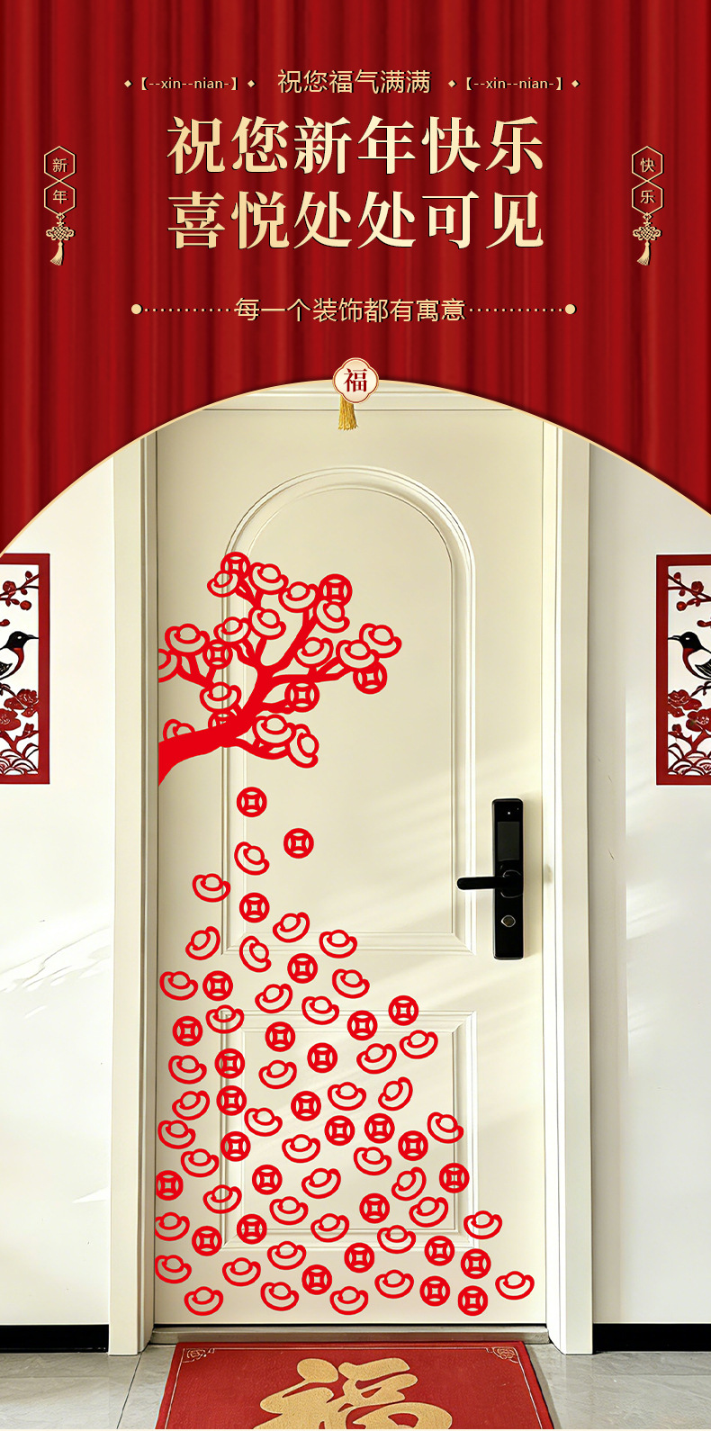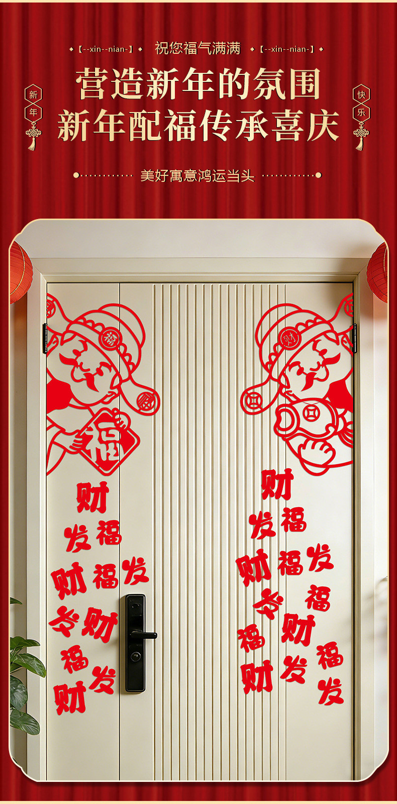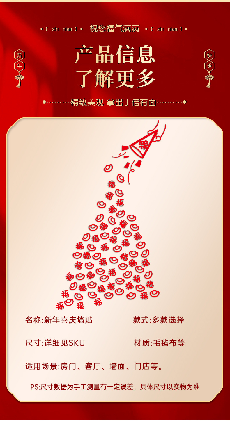 2026新年财神装饰创意无纺布福字墙贴过年春节门店氛围场景布置