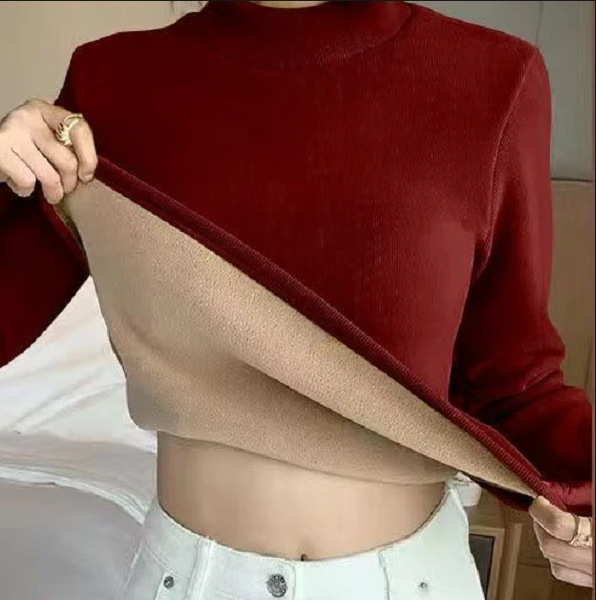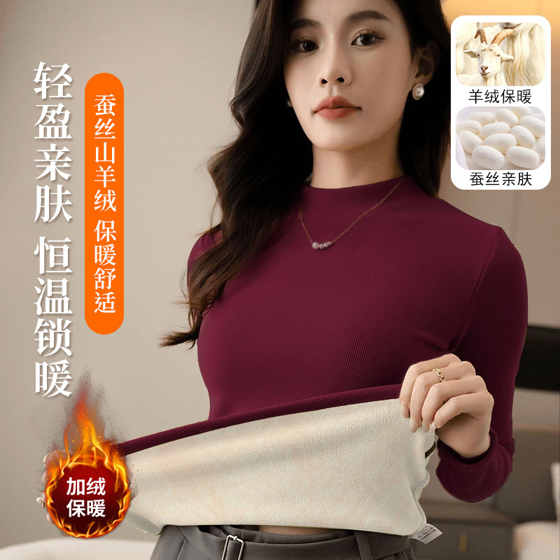 加绒加厚小立领打底衫女秋冬季洋气内搭2025新款加绒加厚长袖上衣