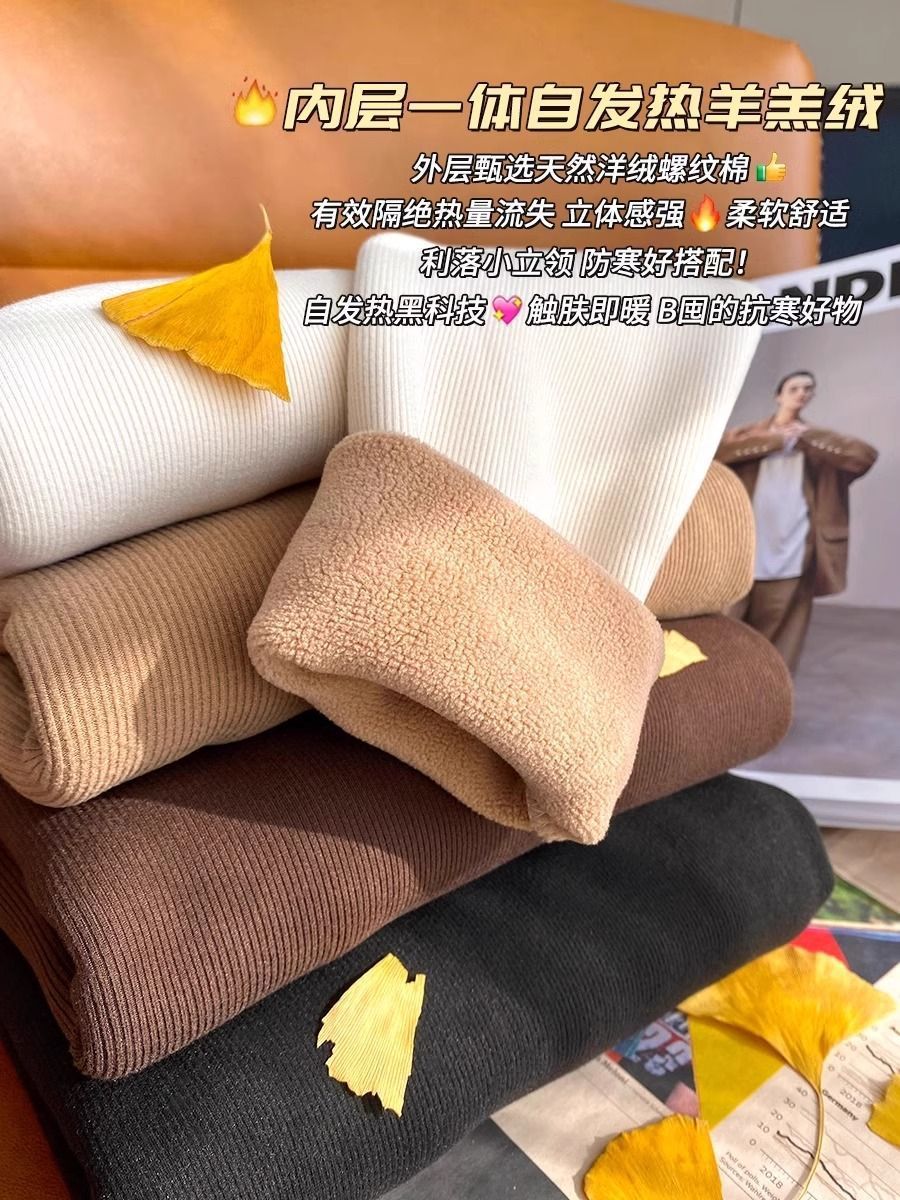 加厚小立领羊羔毛保暖上衣女螺纹卡其色打底衫秋冬洋气内搭