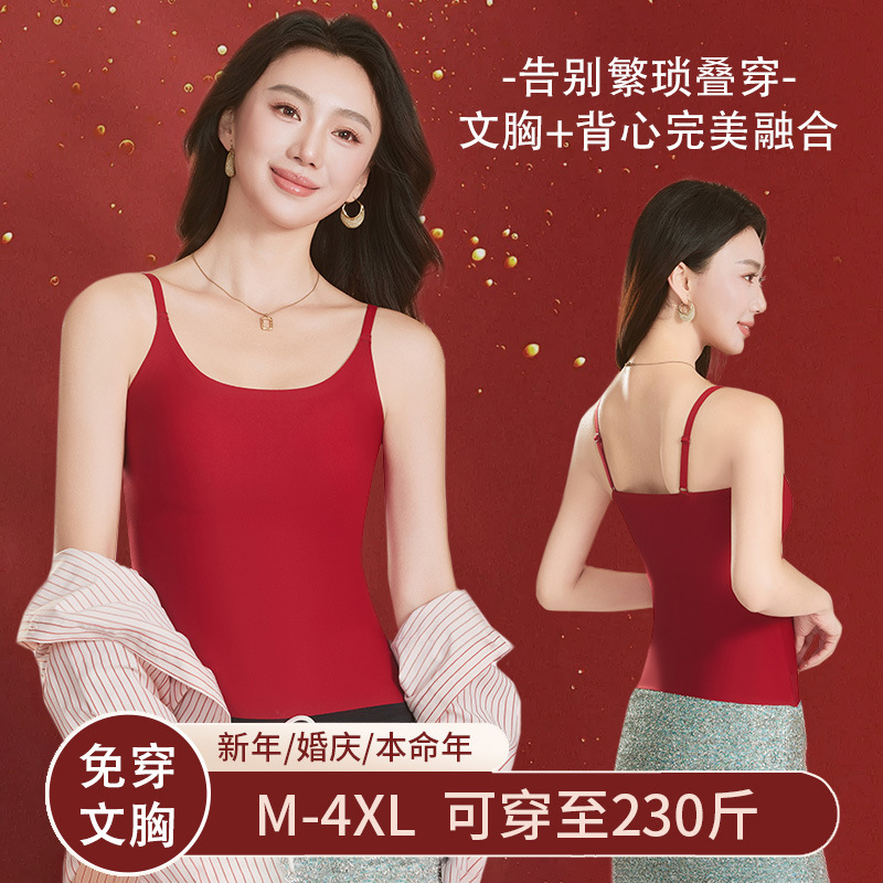 2026新款本命年红美背带胸垫bra文胸一体内搭打底衫吊带背心上衣