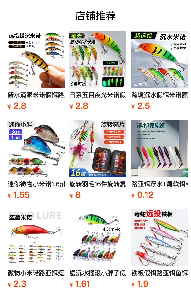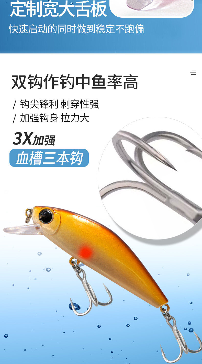 目标鱼种 通用,白条,黑鱼,黑鲷,鳜鱼,鳟鱼,鲶鱼,海鱼,带鱼,鲅鱼,鲳鱼,鲈鱼,马口鱼,翘嘴,金枪鱼,柳根鱼,叉尾鱼,军鱼