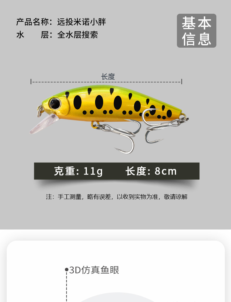 沉水米诺路亚饵8cm11g淡水鲈鱼假饵鱼饵仿生塑料硬饵渔具现货跨境