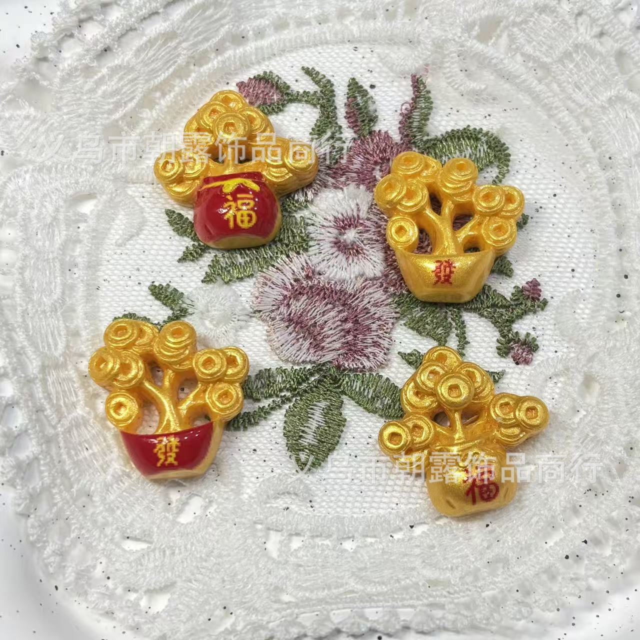 新年元宝发财树diy饰品配件 手工摆件手机壳冰箱贴树脂车载装饰贴