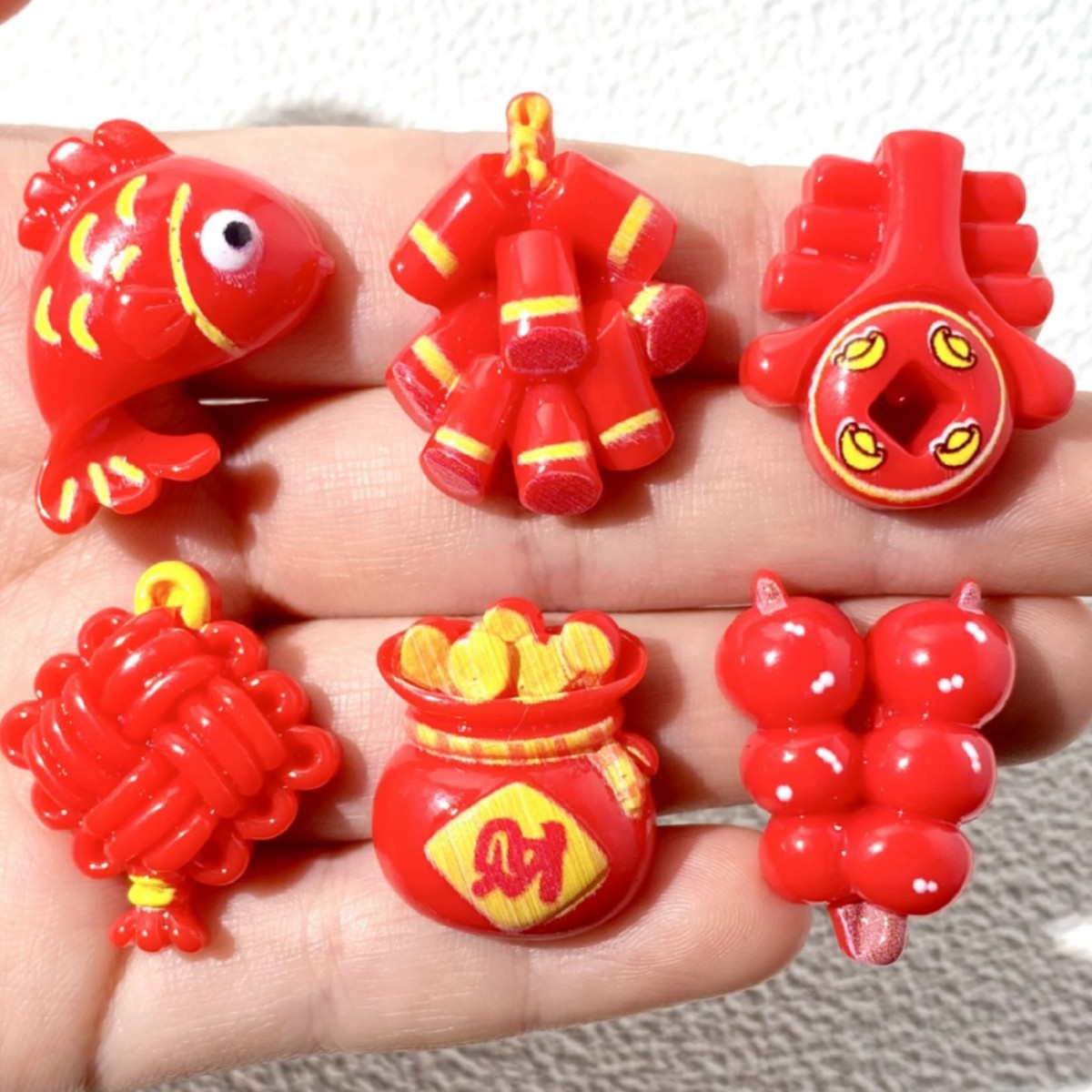 新年锦鲤鞭炮卡通奶油胶配饰创意鞋扣材料树脂配件diy饰品发夹