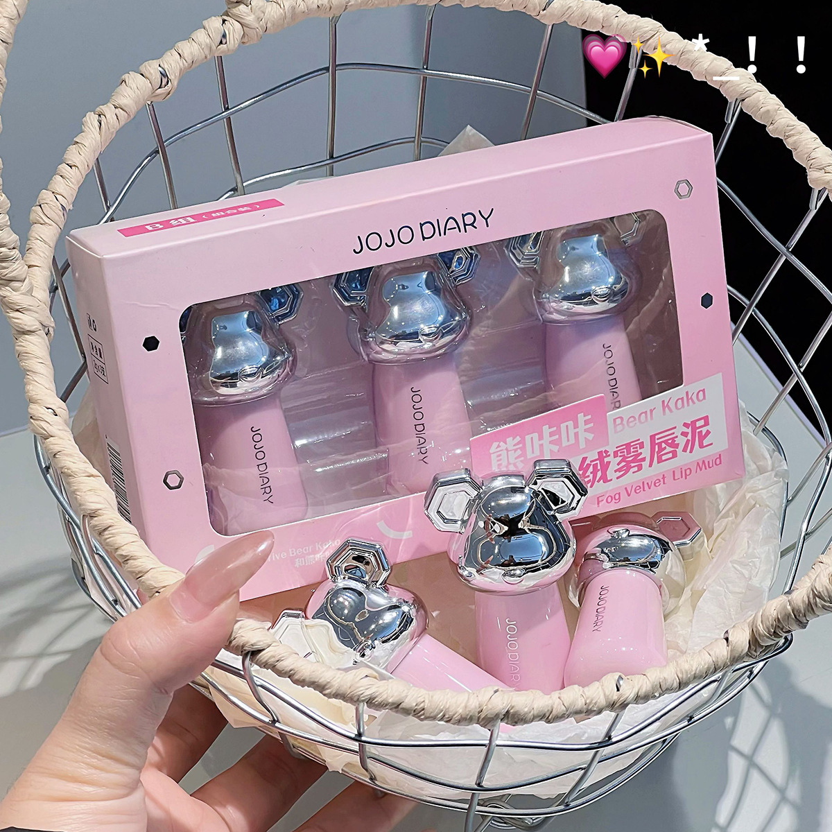 JOJO DIARY熊咔咔绒雾唇泥唇釉套装丝绒雾面哑光学生平价显白口红