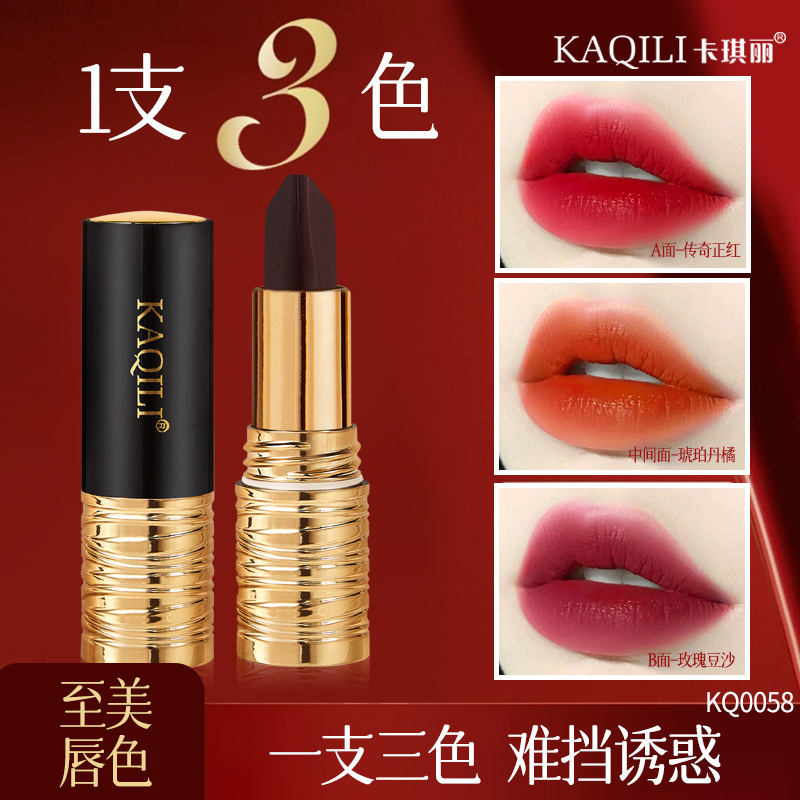 卡琪丽黑魔方固色不沾杯口红 雾面哑光防水不易掉色一支三色口红