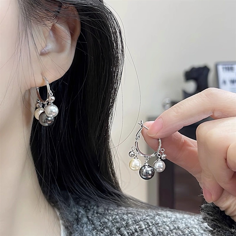 秋冬新款时尚渐变珍珠小耳圈耳坠秋冬新款爆款银针耳环简约耳饰女