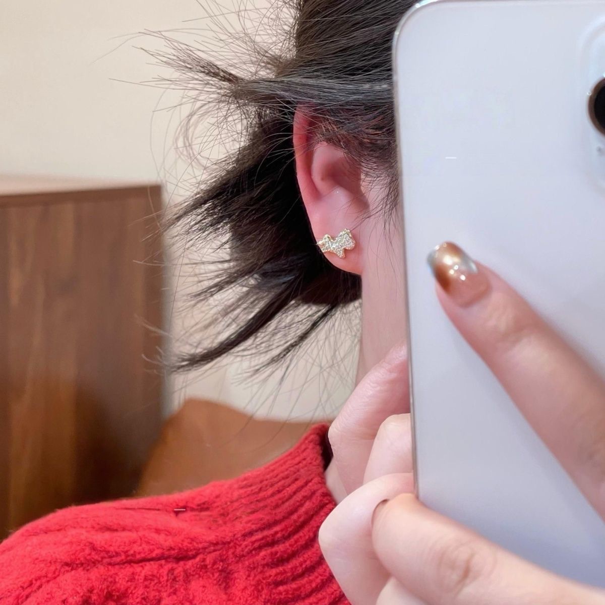 新年款秋冬酒红色珠珠镶钻水滴两戴耳挂耳环轻奢优雅洋气百搭耳饰