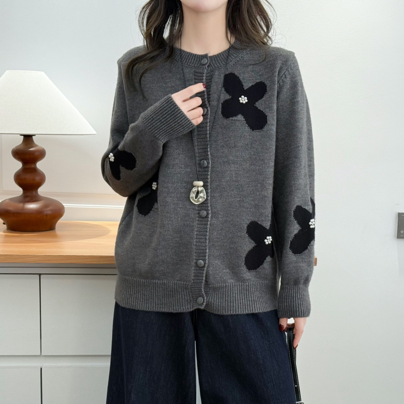 大码女装时尚提花泡珠毛衣开衫秋冬遮肉显瘦洋气针织外套N6005