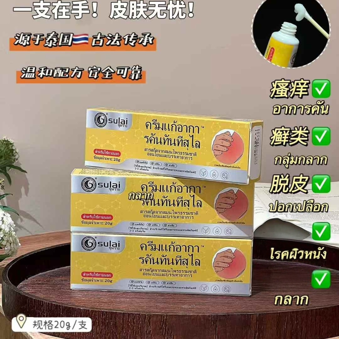 泰国素莱小黄膏冰凉舒缓软膏叮咬红痒正品舒缓肌肤草本温和小黄膏