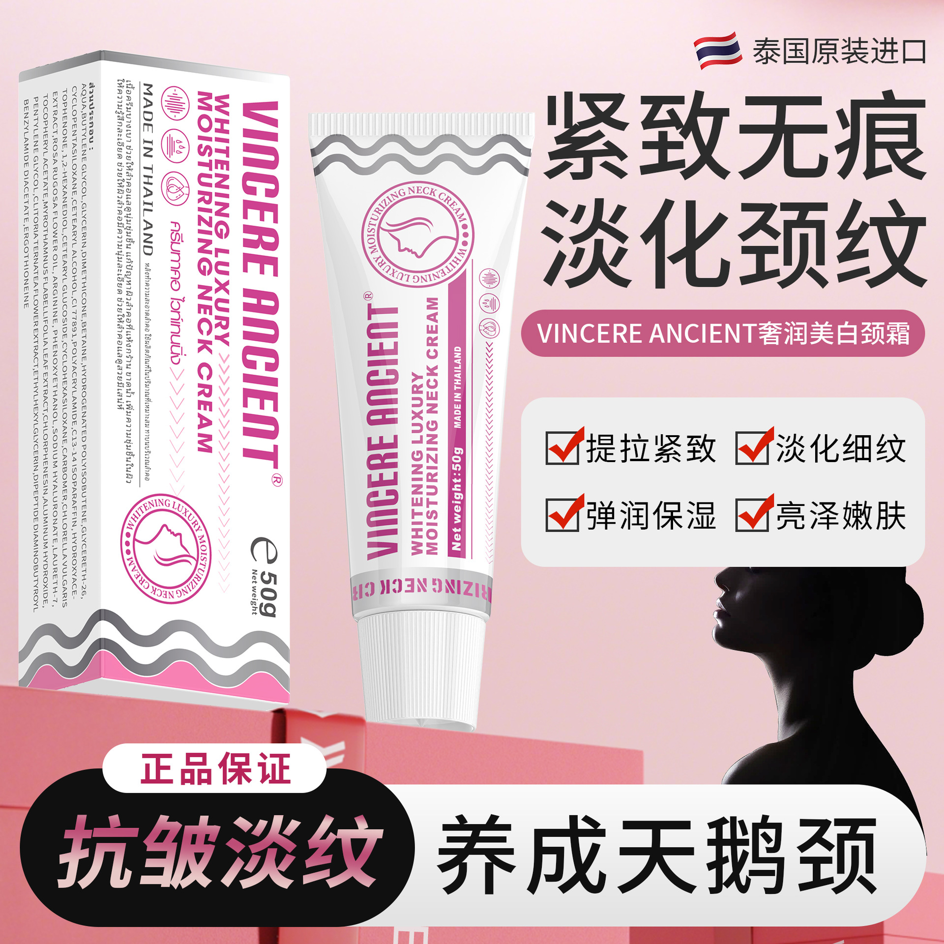 泰国VINCERE ANCIENT滋养奢润颈霜50g淡化颈纹提拉紧致脖子保湿霜