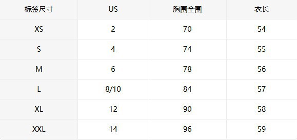 尺码 XS,S,M,L,XL
