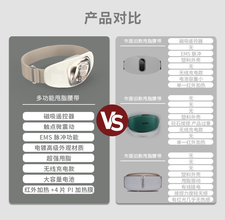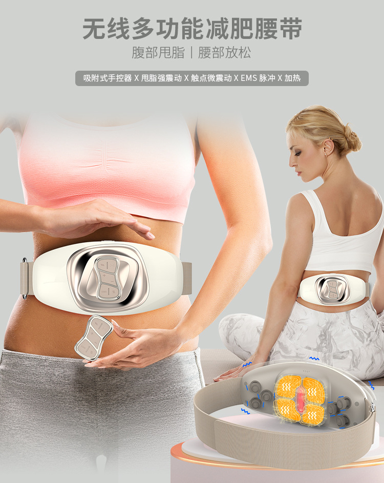 跨境无线EMS脉冲振动按摩腰带红外加热减肥仪塑形爆脂按摩器
