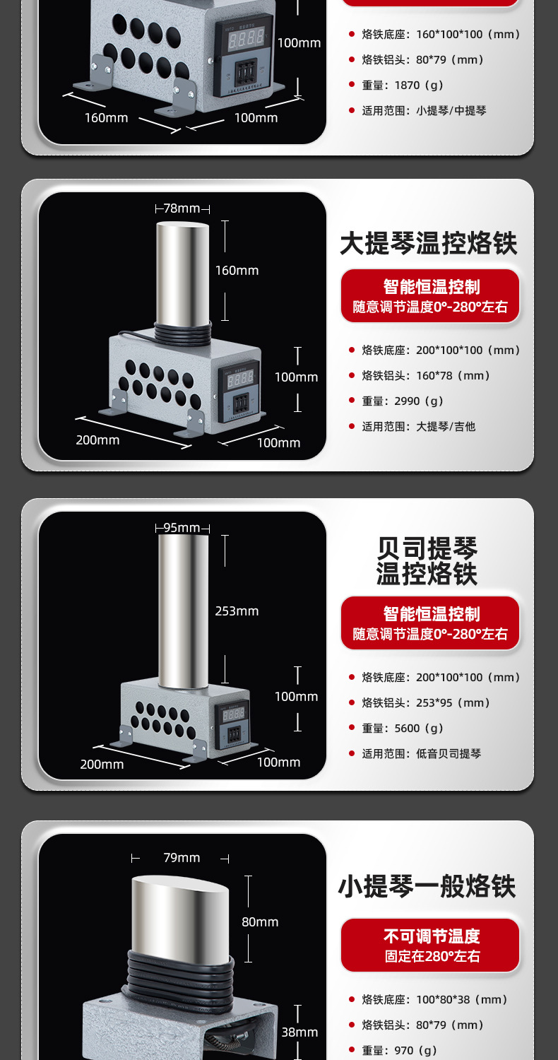 颜色 小/中提琴【一般标准】AI铝烙铁高度80mm,小提烙铁加皮带高度:80mm,小/中提琴【升级智能温控】AI铝烙铁白高度80mm,小/中提琴【升级智能温控】AI铝烙铁黑高度80mm,大提琴【升级智能温控】AI铝烙铁白高度16厘米,大提琴【升级智能温控】AI铝烙铁黑高度16厘米,大提琴【一般标准】AI铝烙铁高度16厘米,贝司提琴【升级智能温控】AI铝烙铁高度25厘米,贝司提琴【一般标准】AI铝烙铁高度25厘米