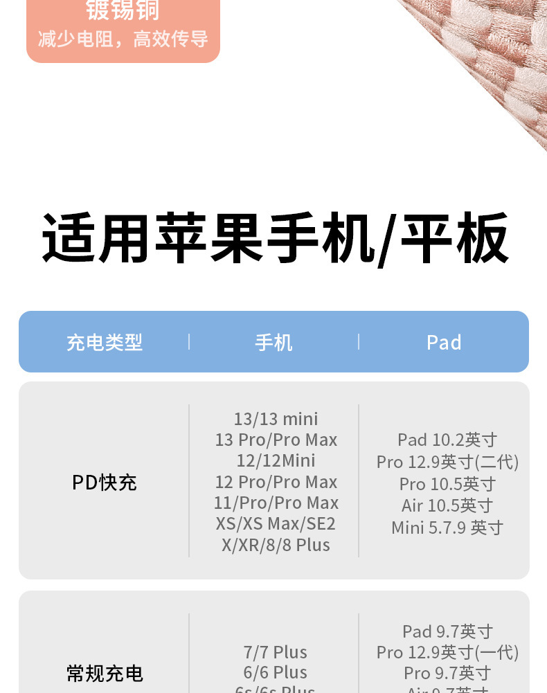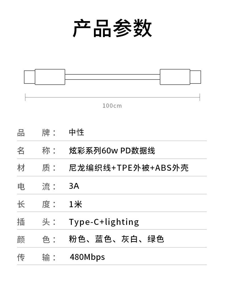 PD急速充電5芯データケーブルは、ワイヤレス充電ケーブル、携帯電話ケーブル、卸売OTGワイヤレス充電シングルヘッドケーブルに適しています。