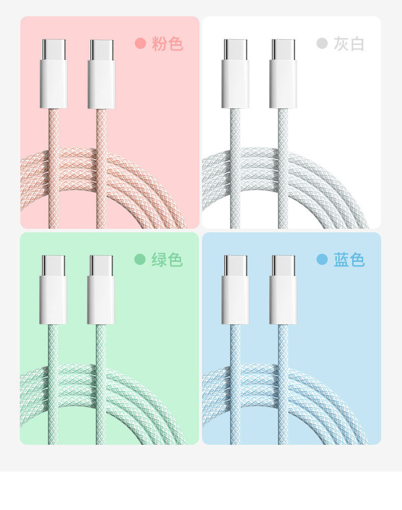 适用苹果快充数据线60w快充线双typec苹果16/17充电线60w编织线