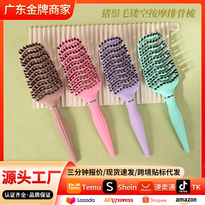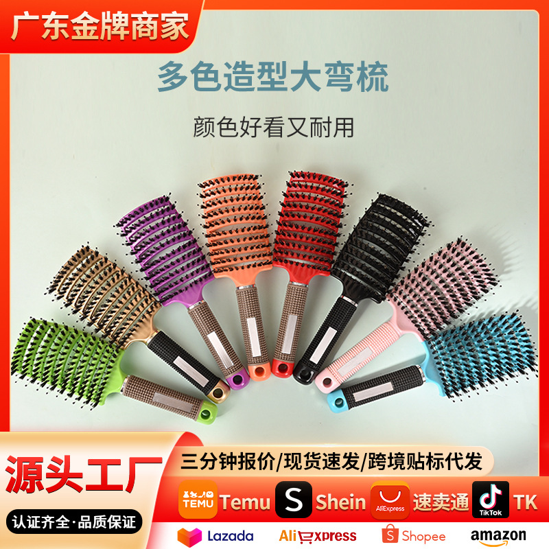 メーカー卸売ビッグカーブコームヘアスタイリングコームスムーズヘアコームカーリングヘアコームプラスチック猪毛マッサージ理髪コーム在庫あり