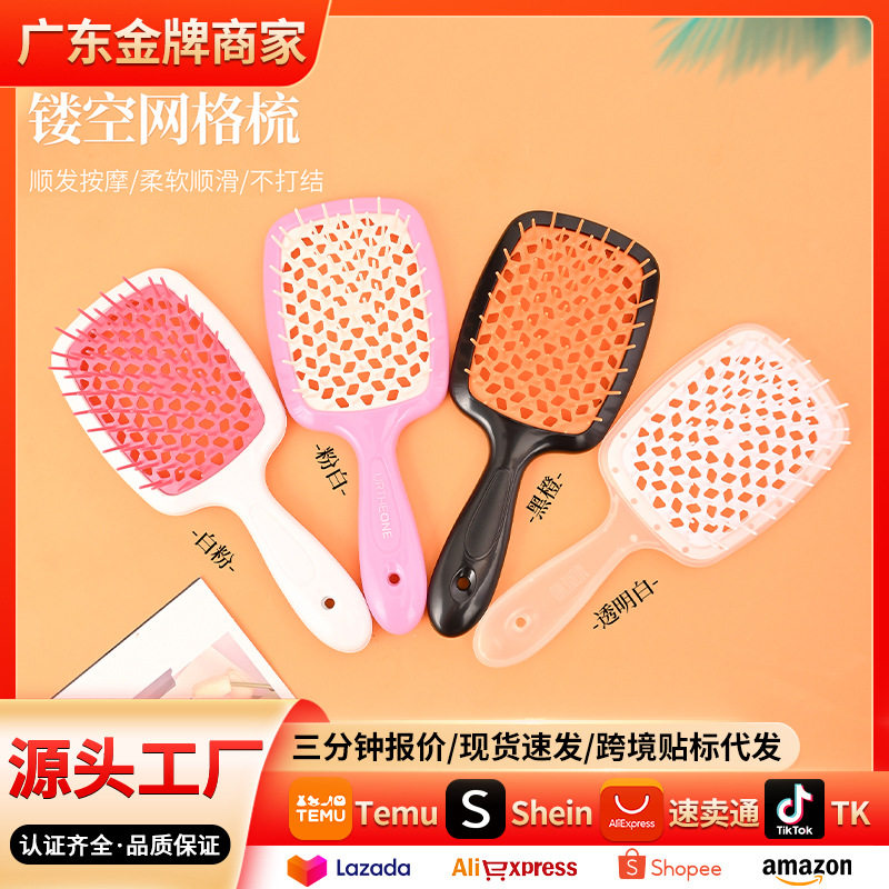 新しい八角形グリッドコーム、ノットフリーのマッサージコーム、ストレートヘアスタイリングヘアコーム、マッサージ中空コーム、ふわふわでポータブル