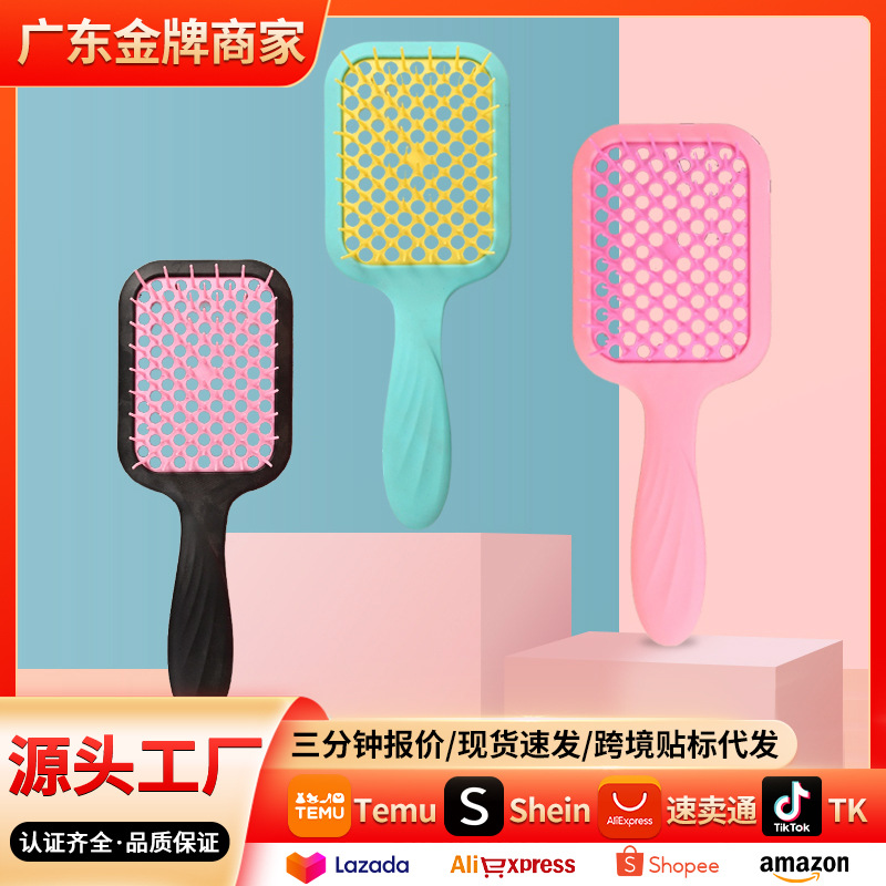 中空マッサージコーム家庭用帯電防止丸い広歯コーム中空ウェットとドライの両用マッサージコーム理髪マッサージツール