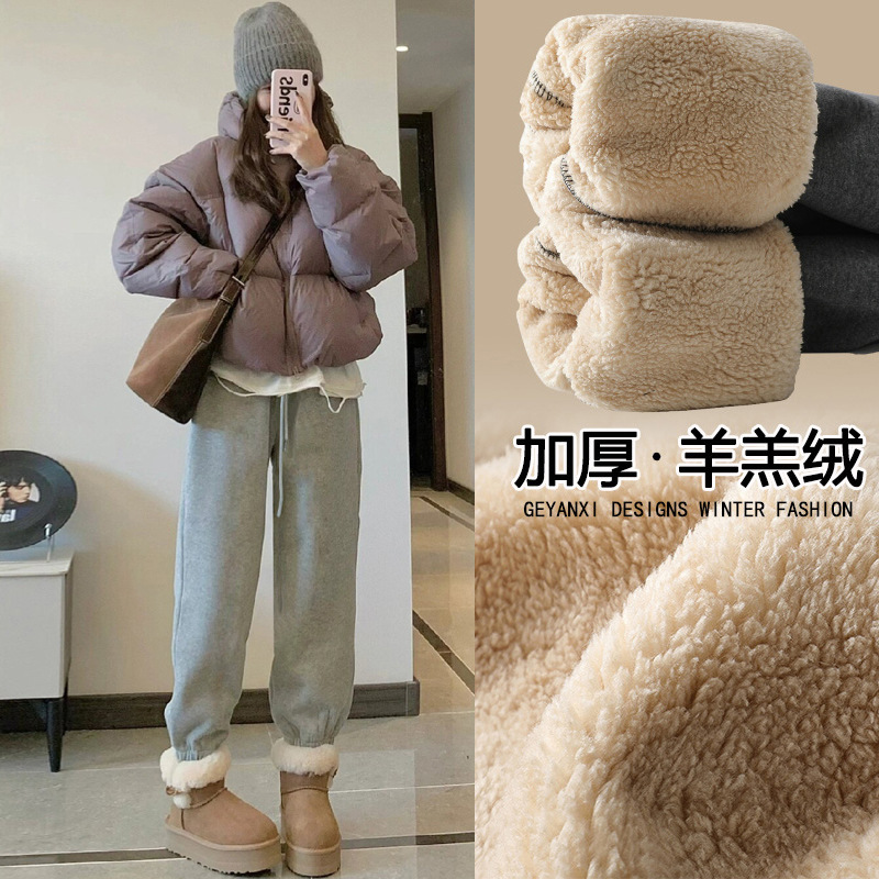 巨厚羊羔绒裤子女冬季宽松直筒运动卫裤加绒加厚保暖外穿东北棉裤