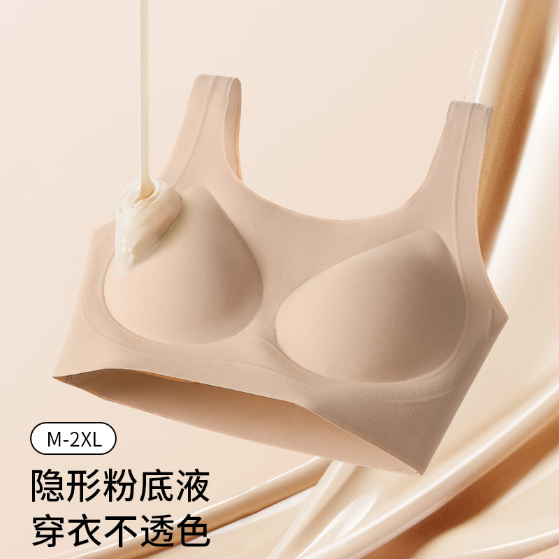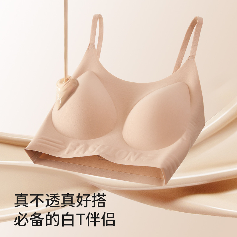 胸が小さい女性向けシームレスリキッドファンデーション下着、プッシュアップで大きく見える、見えない肌色のサスペンダー、細いショルダーストラップ、美しい背中一体型ブラジャー