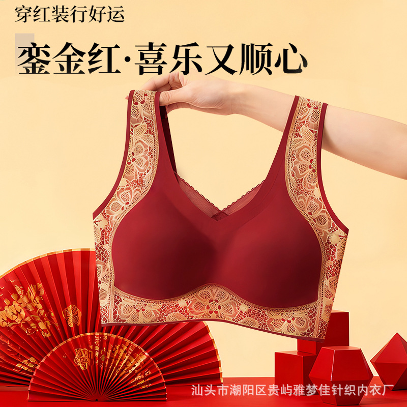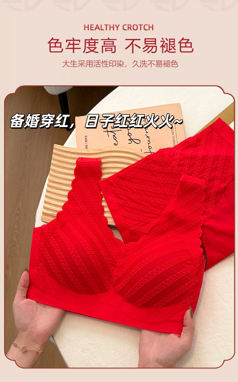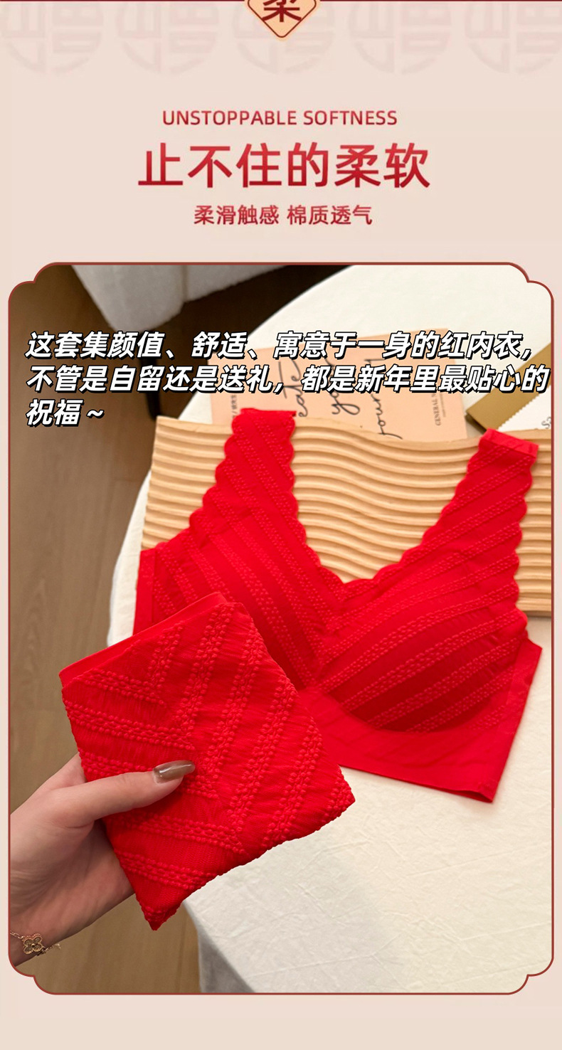2026年本命年大红结婚好运来内衣女无痕无钢圈结婚红色文胸套装女