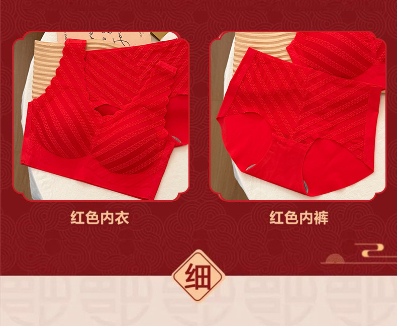 衣架装26新款大红内衣女本命年套装婚庆鸿运无痕美背无钢圈文胸罩