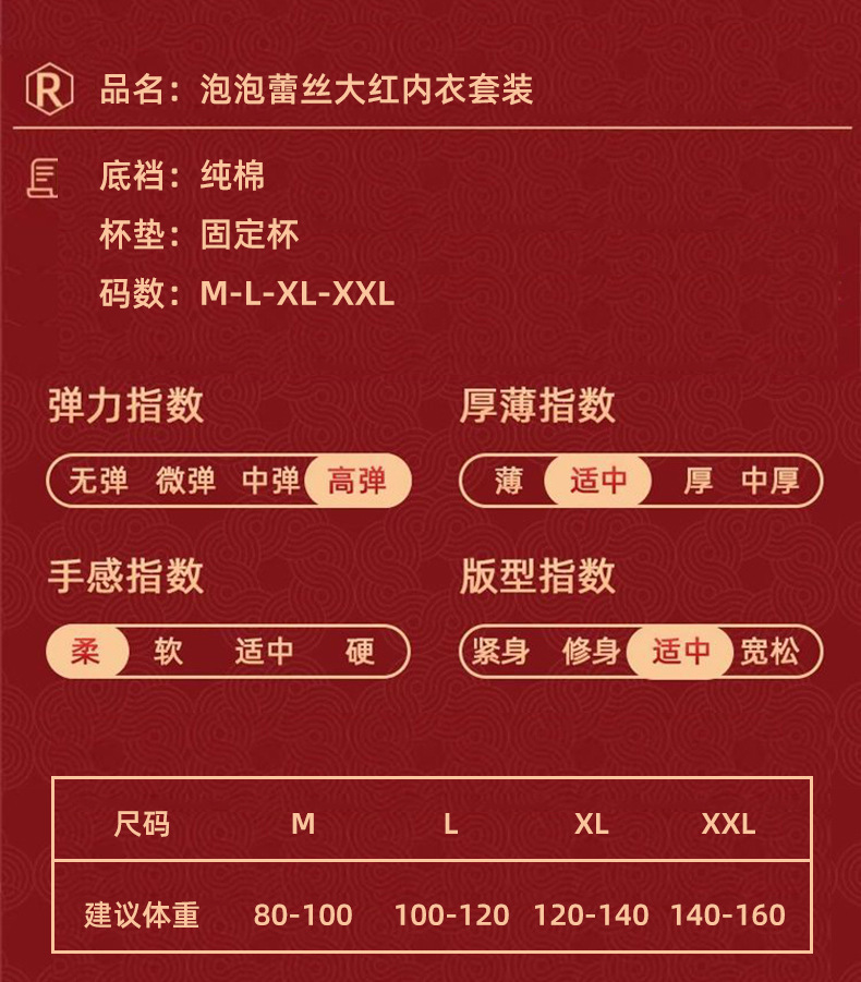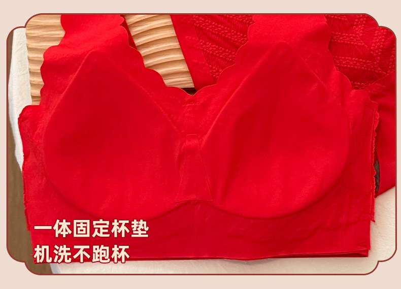 90-160斤喜庆鸿运本命年大红套装女士无痕固定杯聚拢舒适美背内衣