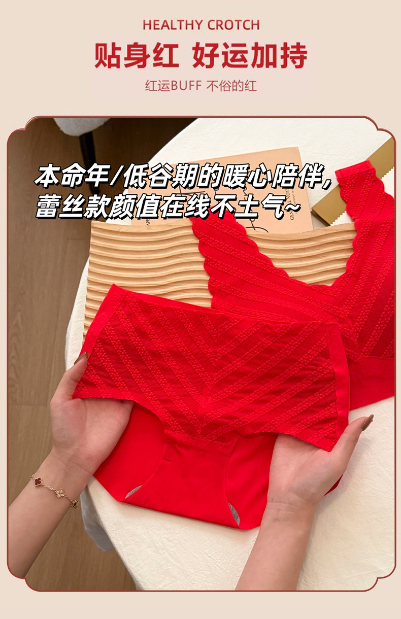 新しいサイズの赤い本命年下着セット女性本命年結婚無鋼輪無痕文ブラジャーケース