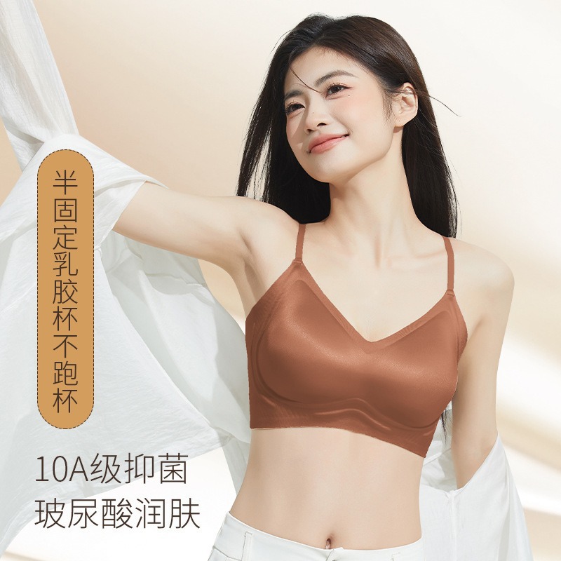 シルクゼリー下着、スパゲッティストラップ、美しい背中、ノンワイヤー、薄いシームレスラテックスブラ、小さな胸のプッシュアップ、ソフトサポート
