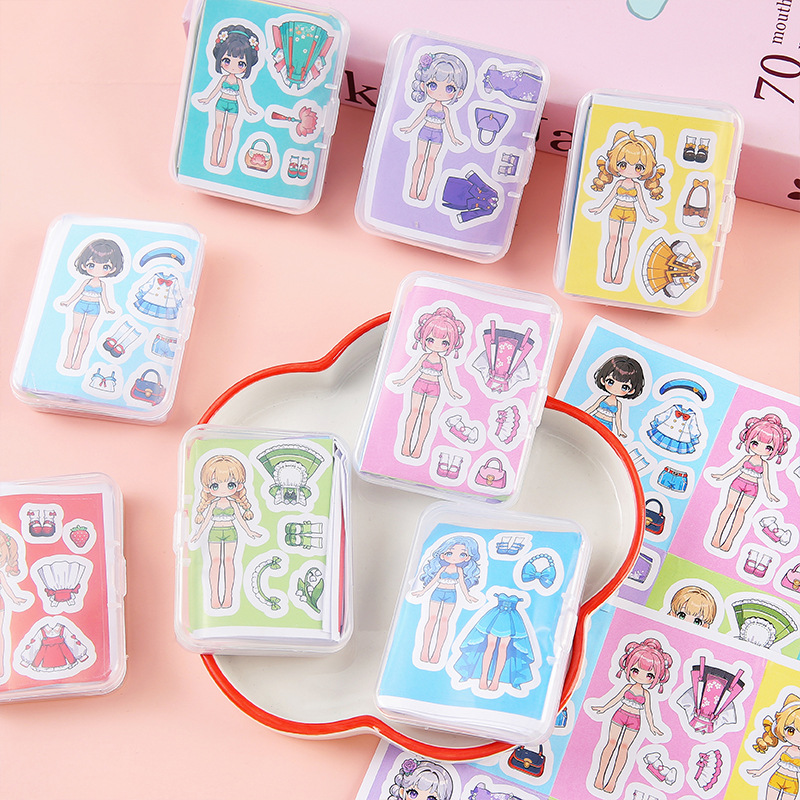公主娃娃盒装贴纸卡通女孩换装贴纸免剪裁幼儿园手工礼物小奖品