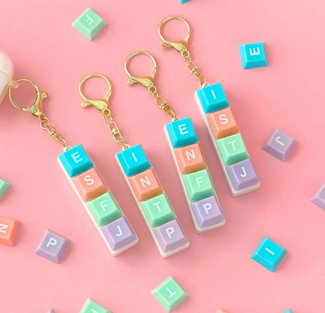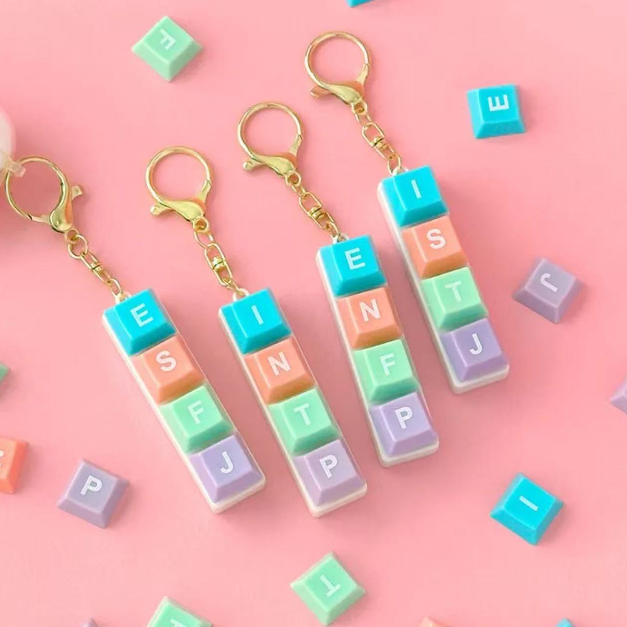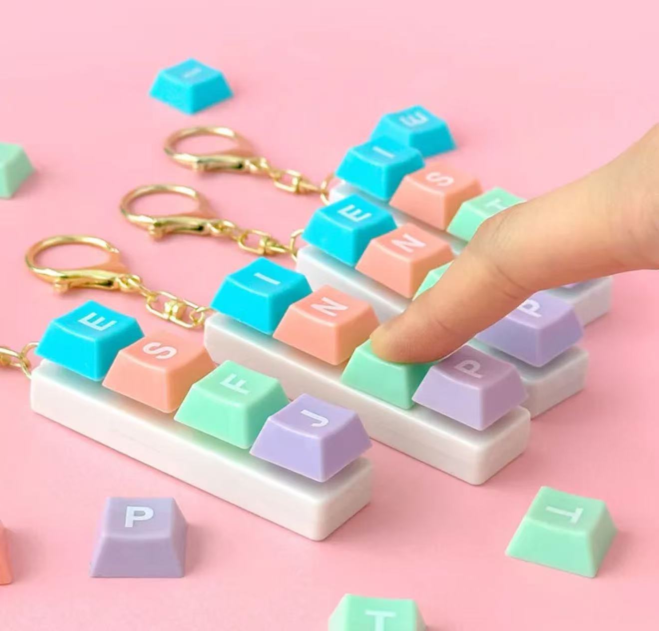 韓国製 テトリス マカロン 文字プリント 減圧ボタン キーボードキーホルダー