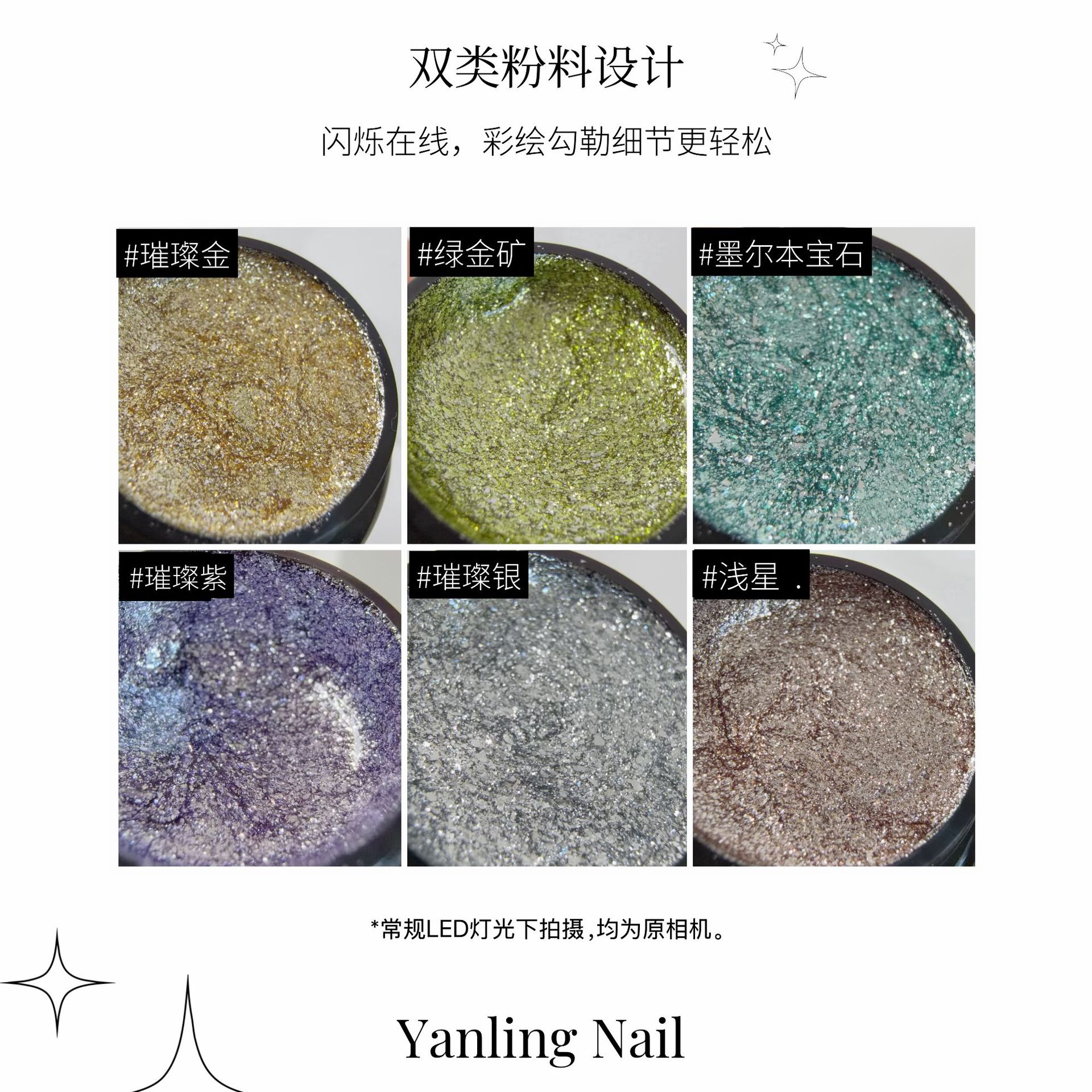 燕翎璀璨铂金胶 高密度爆闪铂金胶画星星闪粉牛郎铂金美甲胶